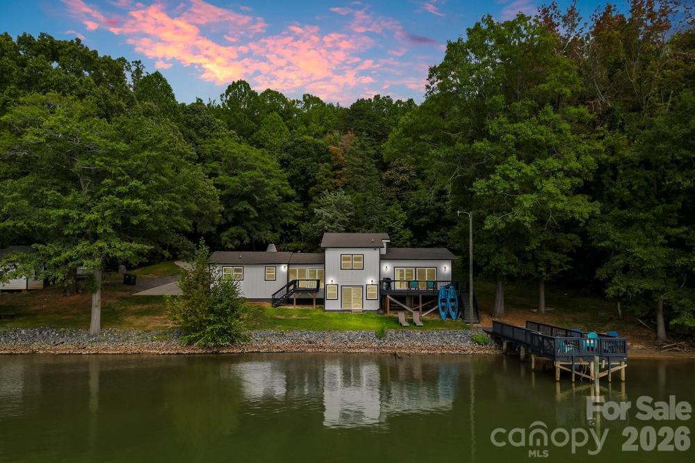~Located on the SUNSET side of Lake Wylie in Charlotte, this fully renovated lakefront retreat will take your breath away! This exquisite three-bedroom, three-bath custom home feels like new construction, showcasing a complete transformation with brand-new kitchen, bathrooms, flooring, electrical, plumbing, roof, and exterior—every detail thoughtfully updated. Inside, you’ll find luxury vinyl plank flooring, stainless steel appliances, quartz countertops, and custom cabinetry, all bathed in abundant natural light from the home’s expansive windows. Enjoy spectacular sunset views over Lake Wylie from nearly every room. Step outside to your own private pier and charming little beach area, perfect for swimming, fishing, or launching a kayak. Spacious decks make entertaining a breeze, and there’s plenty of parking for guests. Just minutes from the exciting up-and-coming River District, downtown Belmont, and acclaimed dining hotspots like Papa Doc’s and Drift, this home offers the perfect blend of tranquility and convenience. Whether you’re seeking a primary residence or a weekend getaway, this stunning property delivers a one-of-a-kind lakeside lifestyle.