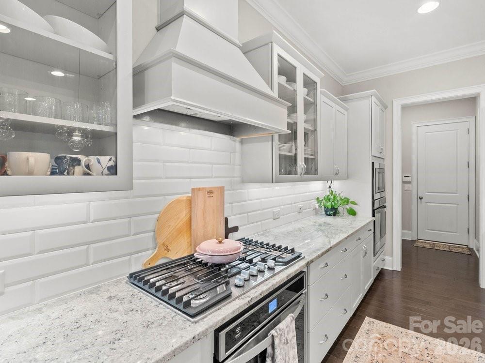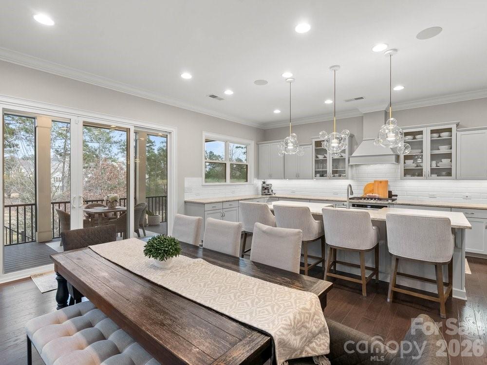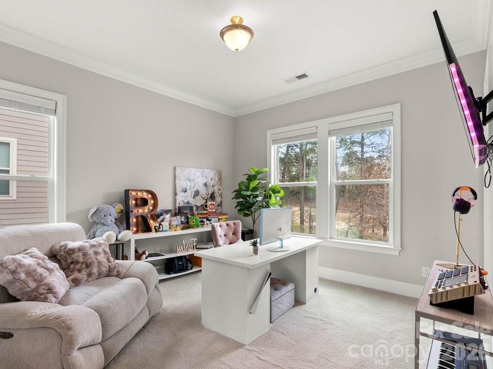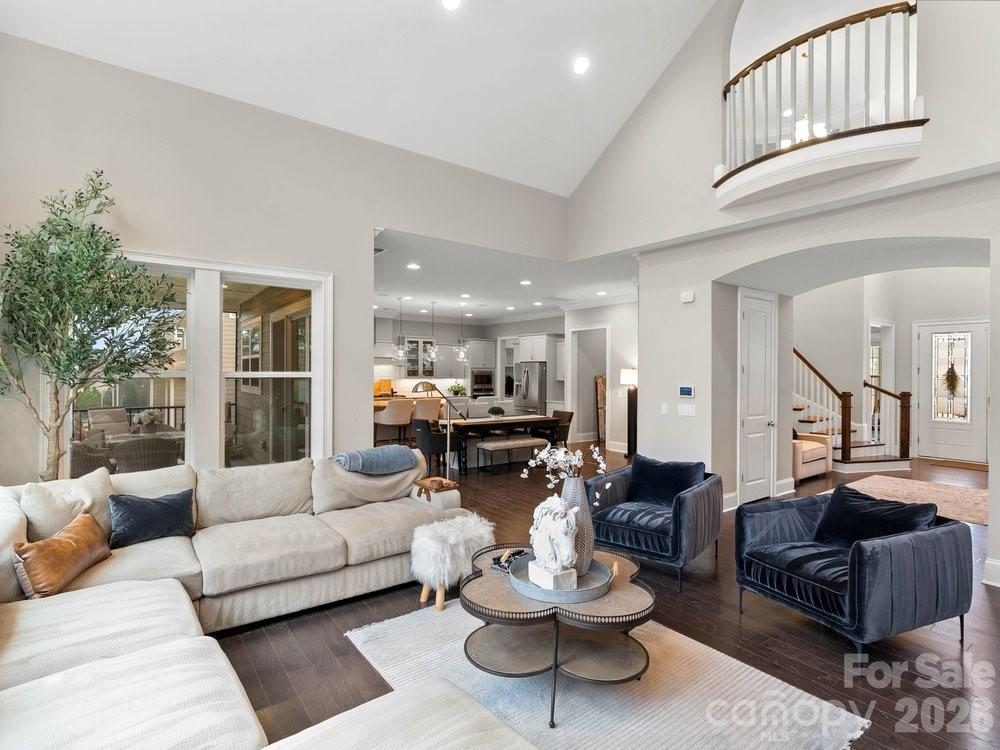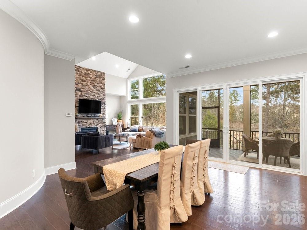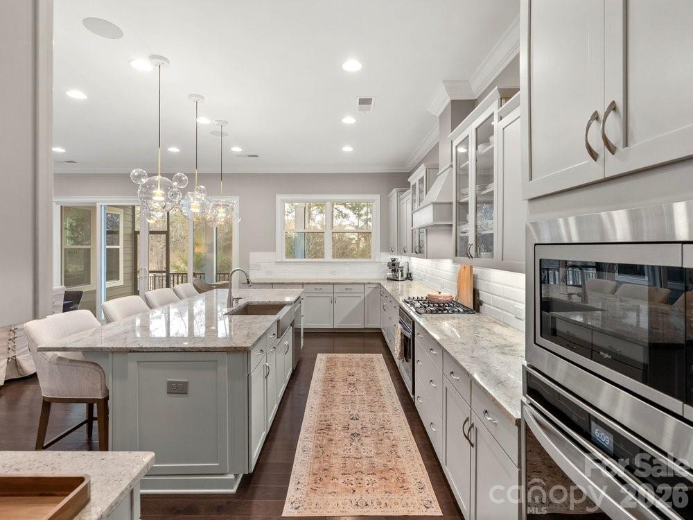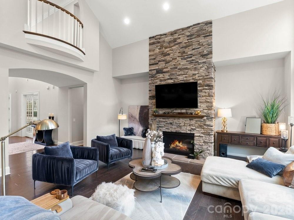 Located on the 11th hole in the gated Montage section of the premier Palisades community, this stunning home offers luxury living on a private, tree-lined golf course homesite at the end of a quiet street that flows into a cul-de-sac. Freshly painted throughout the interior, the home features custom light fixtures, beautiful wood floors, and a dramatic two story foyer highlighted by a winding wooden staircase. The vaulted great room is filled with natural light from floor to ceiling windows and anchored by a striking stone fireplace. Just beyond, the chef’s kitchen is truly the heart of the home with a wooden hood vent, gas cooktop, quartz countertops, cabinet under lighting, and an oversized island perfect for gathering. A butler’s pantry with glass cabinetry and custom backsplash connects the kitchen to the formal dining room, creating a seamless space for entertaining. Step outside to the expansive screened porch with Trex decking, overlooking a private backyard complete with a paver patio and built in outdoor grill. The main level also includes a dedicated office with French doors, coffered ceilings, and a closet, along with a guest suite featuring a full bath. Upstairs, the spacious primary retreat showcases dual walk in closets, a custom light fixture, and a spa inspired bath with a large tiled walk in shower, soaking tub, and dual vanities. Four of the six bedrooms include en suite baths, offering comfort and privacy for family and guests alike. A huge bonus room provides flexible space for a media room, recreation room, additional bedroom, or secondary living area. With six bedrooms, five and a half bathrooms, a three car garage, and ample driveway parking, this exceptional golf course home combines elegant design, thoughtful upgrades, and an unbeatable location within one of the area’s most sought after communities. Residents enjoy close proximity to Lake Wylie and McDowell Nature Preserve, as well as the option to join The Catawba Yacht Club. The Palisades community offers championship golf at the Club at Longview, resort-style pools, tennis and pickleball courts, a fitness center, walking trails, playground, vibrant social events, and clubhouse dining overlooking the course. This is an opportunity to experience refined golf course living with exceptional amenities both at home and throughout the community!