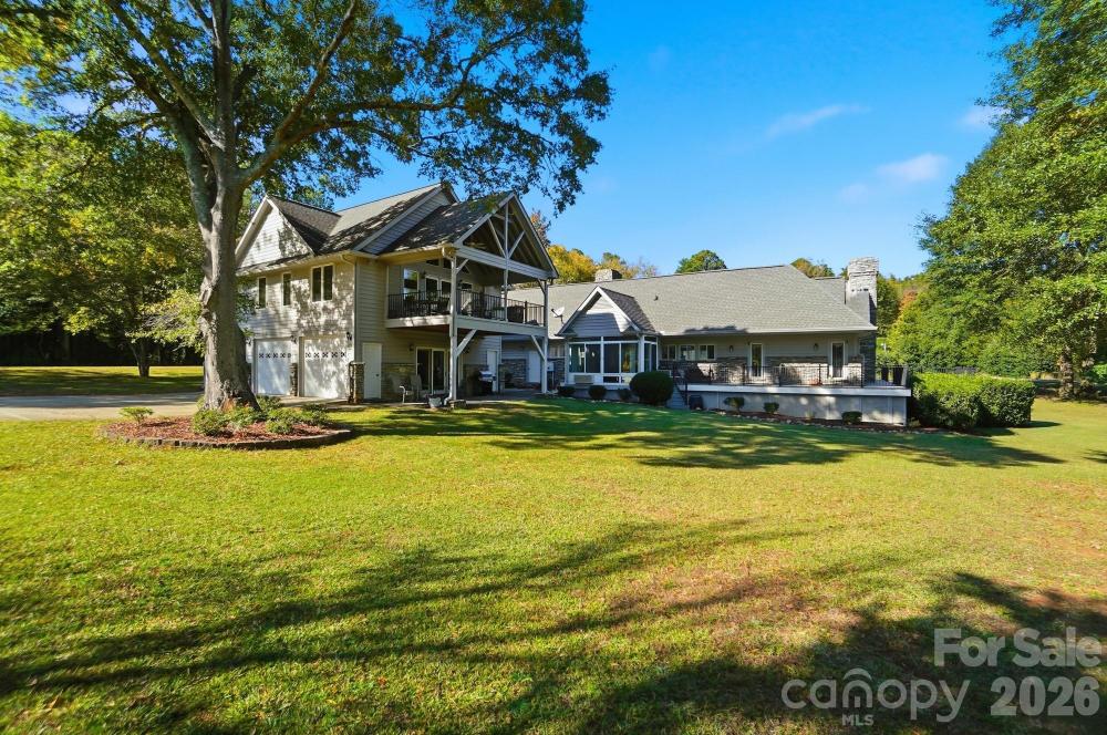 Lake Wylie Waterfront Retreat — Private Cove Perfection. Discover the best of Lake Wylie living in this stunning waterfront home tucked just off the main channel in a peaceful, protected cove. This desirable level lot offers privacy, natural beauty, and an easy walk to your own sandy beach shoreline and private dock — ideal for swimming, boating, and relaxing lakeside. Designed for comfort and functionality, the main home features one-level living with an updated primary suite and a spa-like bath, two vaulted great rooms filled with natural light, each with a cozy gas fireplaces. The spacious kitchen boasts a large island, an eat-at bar, and ample cabinetry — perfect for gatherings. A sunroom and wraparound composite deck invite you to soak in the serene lake views year-round. Upstairs, a bonus room with a full bath offers flexibility for an office, guest space, or game room. Car enthusiasts and hobbyists will love the massive garage capacity for up to six cars — easily adaptable into a workshop, hobby area, or rec space. Affectionately known as “The Tree House,” the detached garage offers a second living area, complete with a kitchenette, full bath, and sleeping quarters — making it an ideal guest suite or entertaining space. Step out onto the covered deck and take in the panoramic views of your private waterfront paradise. Located just ½ mile from the North Carolina border, this home offers the best of both worlds. Award-winning Clover schools, low South Carolina taxes, and easy access to Charlotte’s International Airport, Uptown Charlotte, and the area’s many dining, entertainment, and medical facilities. This is Lake Wylie living at its finest — peaceful, practical, and perfectly positioned for everyday convenience and relaxation.