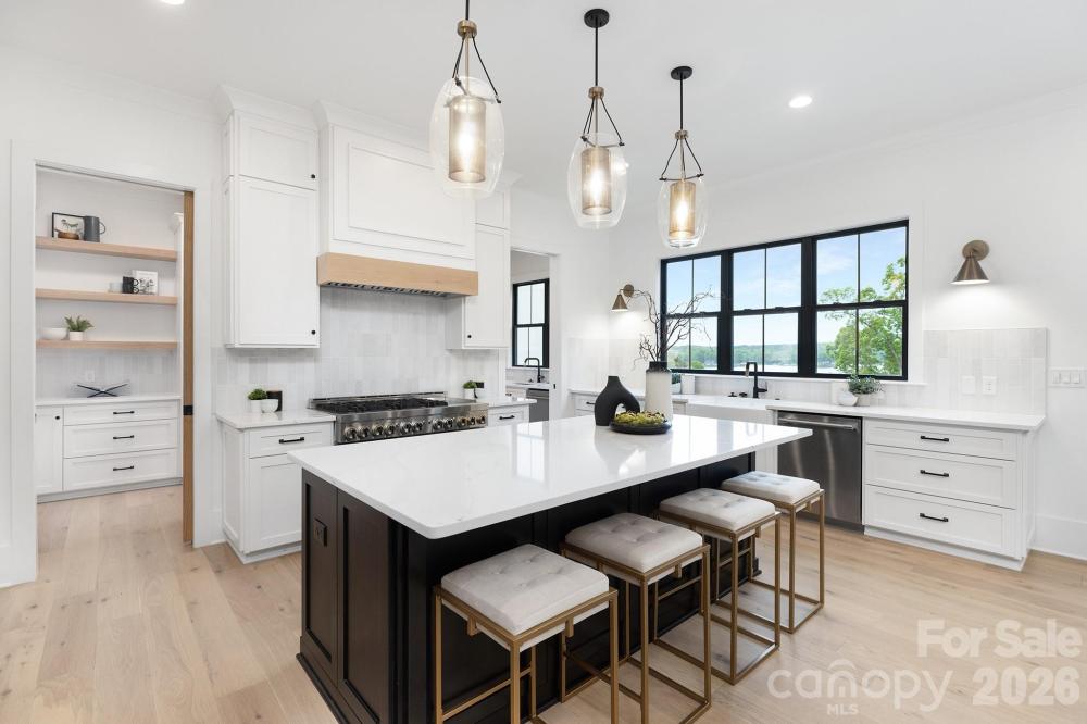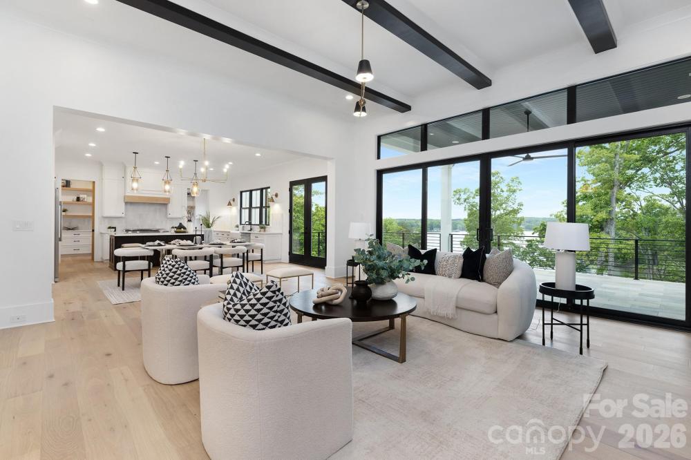 This is an absolutely stunning 6000 sq. ft. new construction home offering everything you would want when in a waterfront oasis. With a premiere location on the Charlotte city side of Lake Wylie this home offers captivating views throughout with beamed and soaring cathedral ceilings and palladium windows to take one's breath away. A fabulous gourmet kitchen has a 60" refrigerator/freezer, 48" Pro series range, gorgeous quartz tops complimented by a fully equipped second chef's prep kitchen for special gatherings and parties. A finished basement offers a 5th bedroom/bathroom, plus a full pool bath, huge rec. room, wet bar and large patio doors opening to a 40 ft. pool and spa set off by the marble patio. Large terraced main level lawns lead to a natural gently slopped stone walkway to the waterfront and boat dock. The nearby Palisades Country Club offers Golf and Tennis memberships for additional recreational activities and access to the city amenities is a breeze.