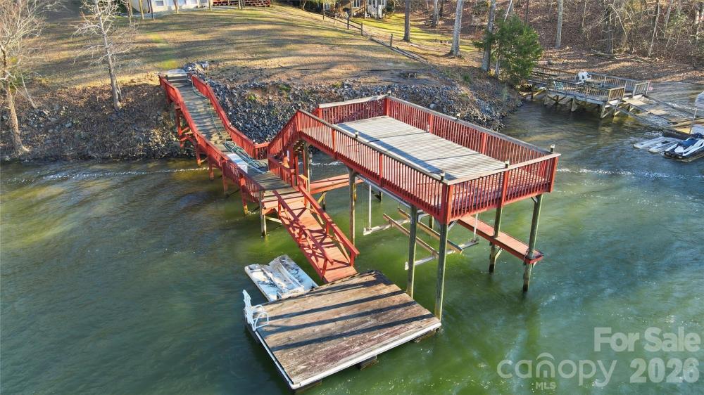 Discover the perfect blend of peace and play at this charming Lake Wylie retreat. Featuring a gently sloping lot in a quiet, protected cove with long range main channel views. Surrounded by mature hardwoods, the property offers privacy, natural beauty, and tons of space for outdoor enjoyment. Spend your days boating, fishing, or swimming from your covered dock with lift, then unwind on the sundeck while taking in tranquil lake views. Whether you’re seeking a serene weekend getaway or comfortable full-time living, this waterfront home delivers the best of lakeside living and is ready for your personal touches. Inside the home discover a spacious eat-in kitchen with stainless steel appliances, center island, pantry, and wet bar. A flex room(perfect for a home office), 2 bedrooms, 2 baths, dining room, and amazing 2 story great room with stunning lake vistas complete the main floor. The upper-level primary suite offers breathtaking lake views, dual vanities, a walk-in shower, jetted tub, and generous storage. The lower level provides a large recreation room, perfect for entertaining family and friends. Multiple decks create ideal spaces for grilling, hosting, or simply relaxing and enjoying the scenery. With its unbeatable value, versatile living spaces, and exceptional waterfront setting, this Lake Wylie gem offers endless potential. Great location- Palisades Country club nearby with golf, social, pool, and tennis memberships available.