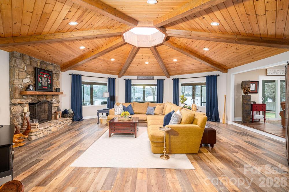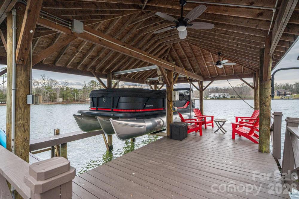Truly, ONE OF A KIND! This Waterfront property not only features a gorgeous updated one-level home, but also a Guest house and a waterside "Boathouse". Situated on an exceptional RARE lot of over 1.6 acres, with BIG year-round water views. Tucked back from the main channel and wooded, offering exceptional privacy. A SC address and super close to NC. As you enter the main house, you are greeted with a great room that has a spectacular ceiling and exceptional views of the water, 3 bedrooms, 3.5 baths, flex space, kitchen perfect for gatherings. Brand new tankless water heater, roof (2025), sealed crawlspace, LVP flooring. Primary bedroom with ensuite, huge walk in closet and conveniently located laundry, with an additional location option for laundry as well. Two additional bedrooms. Drop zone that leads to the perfect "Man Cave" or could be an office, the possibilities are endless. Sip your coffee on the large screened porch with multiple views of the water. Grill out on back patio. 2-car oversized (28X28) garage. A separate guest house is also fully updated with a kitchen, living room, laundry, bed and bath. Perfect for guests, in-laws or parents. The waterside "Boathouse" adds a huge touch of fun and relaxation featuring an open game room area, built-in-beds, 3/4 bath, kitchen/bar, large covered deck to hang out and enjoy the water! A deep-water covered with boat lift and floating swim deck. Enjoy the waterside fire pit. Live paradise every day with this spectacular property! Great location with easy commutes to award-winning Clover schools, Charlotte Douglas Airport, Charlotte, Belmont and so much more. Schedule your showing to see this unique gem today!
