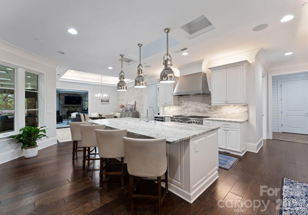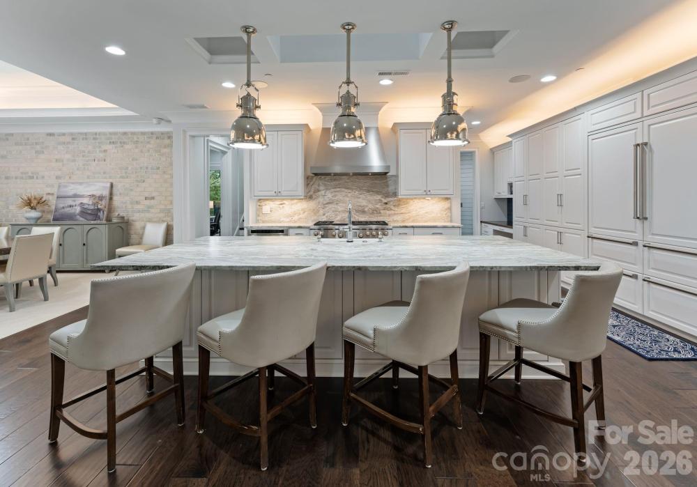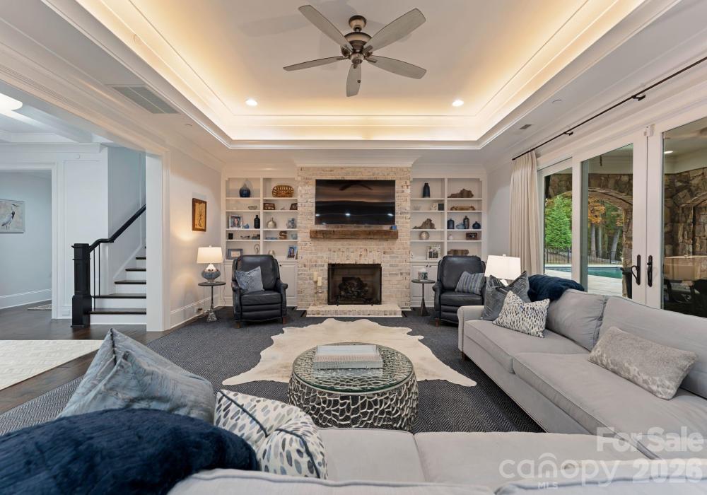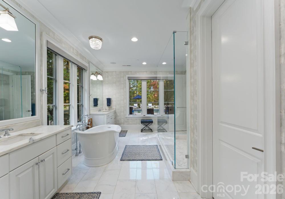Tucked deep within the prestigious Sanctuary community at Lake Wylie, this extraordinary waterfront estate offers the rare combination of 9.6 acres, ultimate privacy, and resort-level living. A long, tree-lined drive sets the tone as you approach the stately stone and wood exterior, complete with an expansive motor court and multiple garage bays. Inside, timeless architecture meets modern refinement with wide-plank hardwoods, detailed millwork, coffered and tray ceilings, and expansive windows framing serene wooded views. The primary suite is privately positioned on the main level and feels like a retreat of its own—featuring a spa-inspired bath with marble finishes, soaking tub, oversized glass shower, dual vanities, and exceptional his and hers custom dressing room. The heart of the home is designed for gathering, with an open-concept chef’s kitchen boasting a large center island, professional appliances, custom cabinetry, and seamless flow into the great room with exposed beams and a statement fireplace. A formal dining space and dedicated office add elegance and function. Upstairs offers generously sized secondary bedrooms and additional flexible living areas, while the layout provides ideal separation for guests or multigenerational living. Outdoor living is simply spectacular. A covered stone veranda overlooks the resort-style pool and spa, expansive travertine terrace, and lush wooded backdrop. Beyond, a private path leads to the covered dock, offering peaceful waterfront access in one of Charlotte’s most coveted nature-focused communities. This is estate living redefined—space, privacy, craftsmanship, and waterfront lifestyle—all within The Sanctuary. Only minutes to shopping, dining and airport.