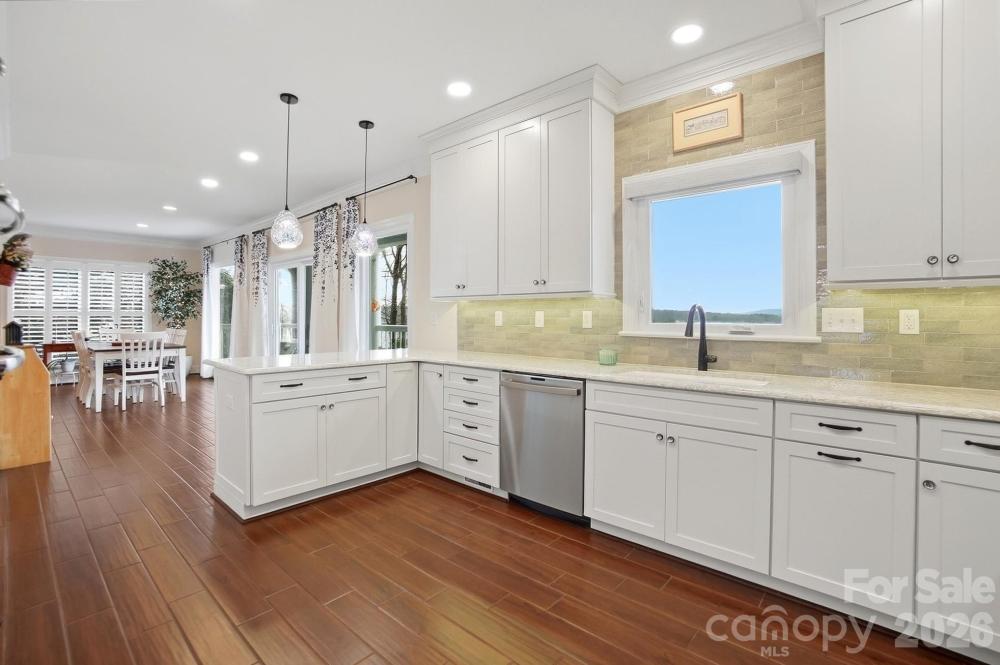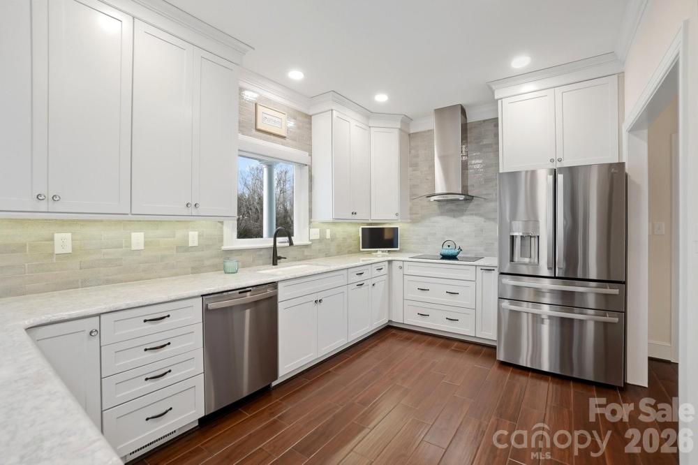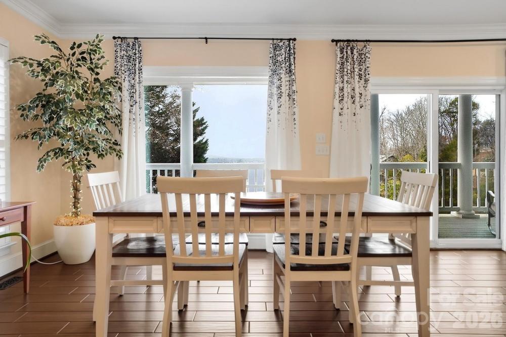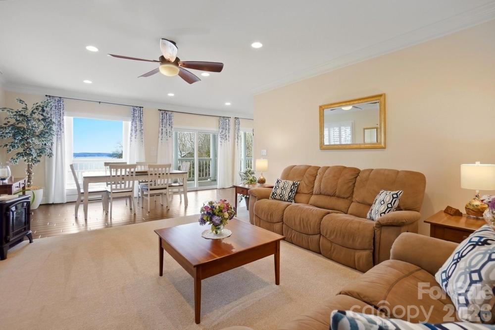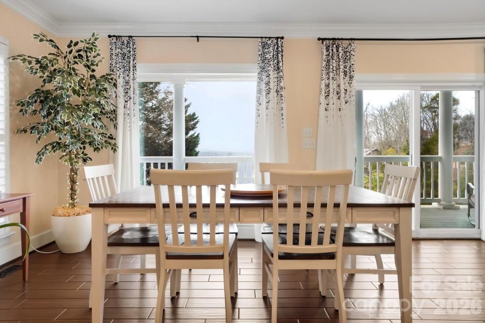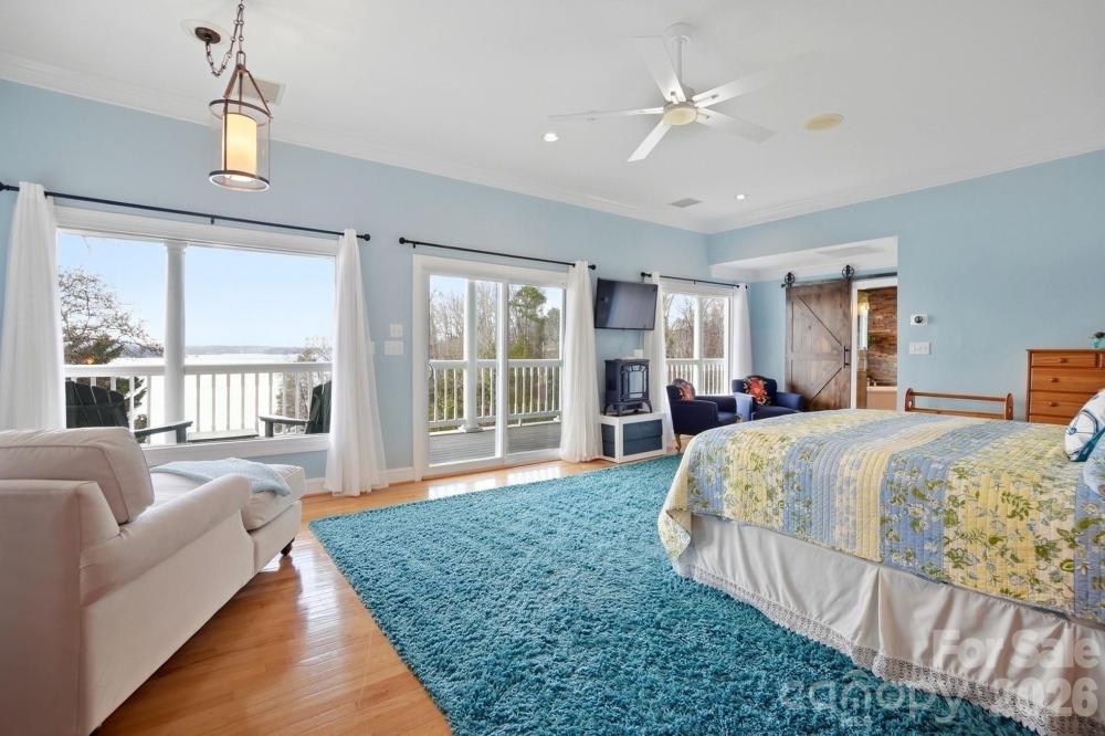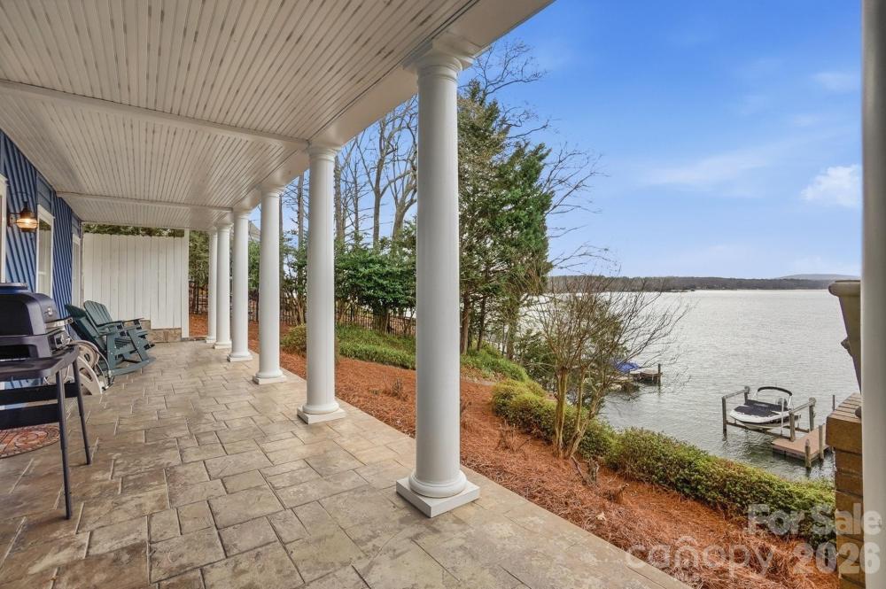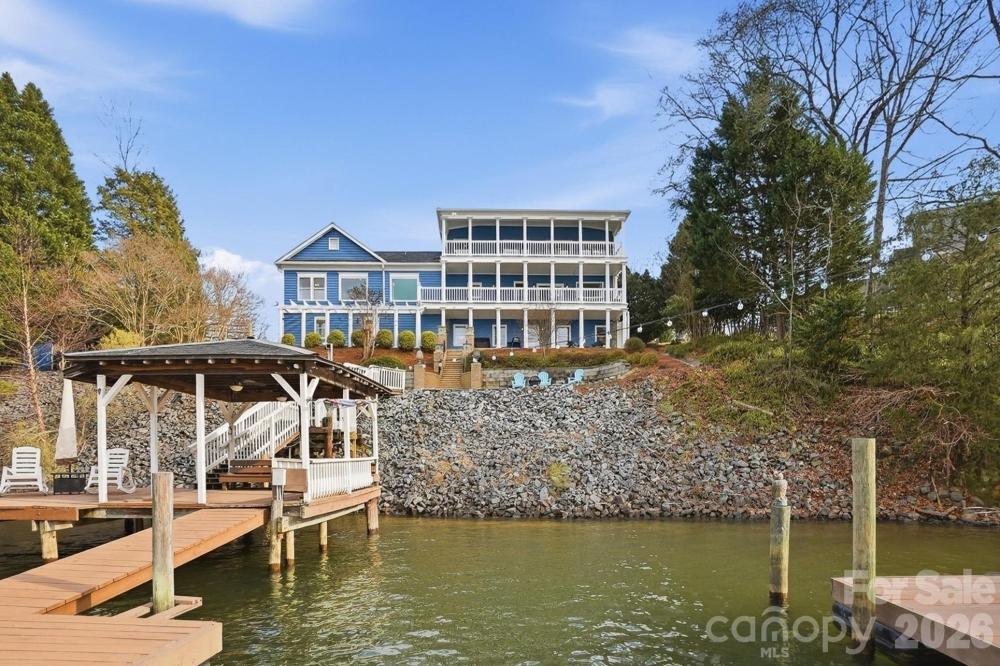 This one-of-a-kind Charleston-inspired waterfront estate is perfectly positioned along the shores of Lake Wylie, tucked at the end of a quiet private drive shared by only 3 other homes and no HOA. Offering approximately 4,187 SQ FT across 3 thoughtfully designed levels, every floor features its own covered porch or patio with sweeping, year-round lake views. The home's layout is exceptionally well-suited for multi-generational living or entertaining on a grand scale. The lake-facing Great Room showcases breathtaking water views and opens to the dining area and kitchen. Renovated gourmet kitchen is beautifully appointed with Cambria quartz countertops, GE Profile appliances, a 5-burner cooktop, wall oven, custom hood, tile backsplash, and under-cabinet lighting. A formal dining room with classic wainscoting adds timeless charm. A spacious second primary suite on the main level (currently used as 2nd home office) features a walk-in closet, 2 additional storage closets, a cedar-lined closet, and a full bath. Dedicated home office boasts incredible lake views, making it ideal for remote work. The guest and theater wing also includes a new electric fireplace, new full-size windows with a stunning lake view, a wired 7.1 home theater system with built-in speakers, and two built-in refrigerators - one for beverages and one for wine. The 2nd floor is devoted to the primary suite with a cedar-lined walk-in closet, dressing area, oversized laundry room, spa like bath with heated floors, and a large private porch with unobstructed lake views. The lower level includes two bedrooms, each with its own en-suite bath (one full, one half), plus a comfortable sitting area and 2nd laundry. Designed for those who love to entertain and embrace lake life, enjoy boating, fishing, and swimming from your private dock with boat and jet ski lift, or relax on the covered dock sitting area. Soak in the sun and peaceful surroundings on the private sandy lounge area. Additional highlights include an oversized 3+ car garage with a dedicated workshop, wired for RV connection, abundant storage, parking for multiple vehicles, a simulated slate 50+ year roof, exquisite architectural details throughout, beautiful flooring, plantation shutters, and magnificent lake views. Great Palisades area location convenient to shopping, dining, and The Palisades Country Club. Thoughtfully renovated and cared for, this exceptional waterfront retreat is luxury lake living at its finest.