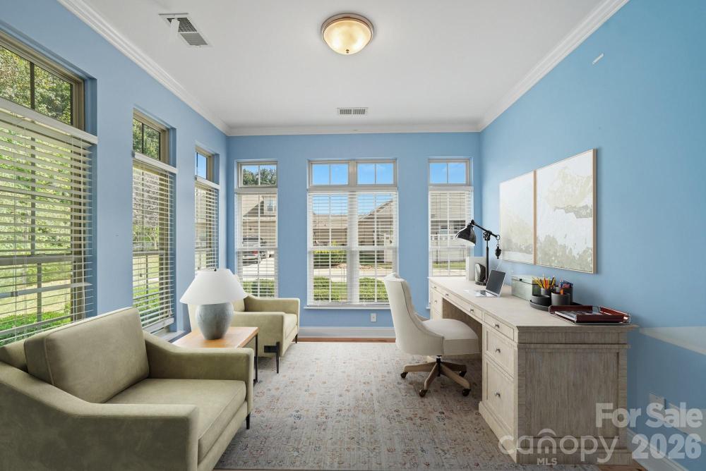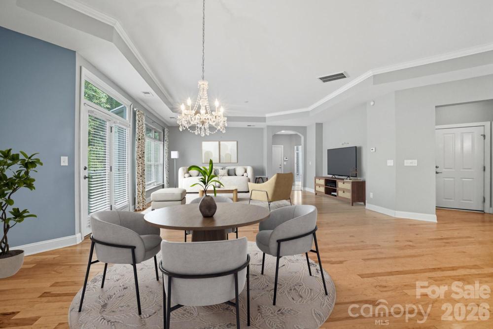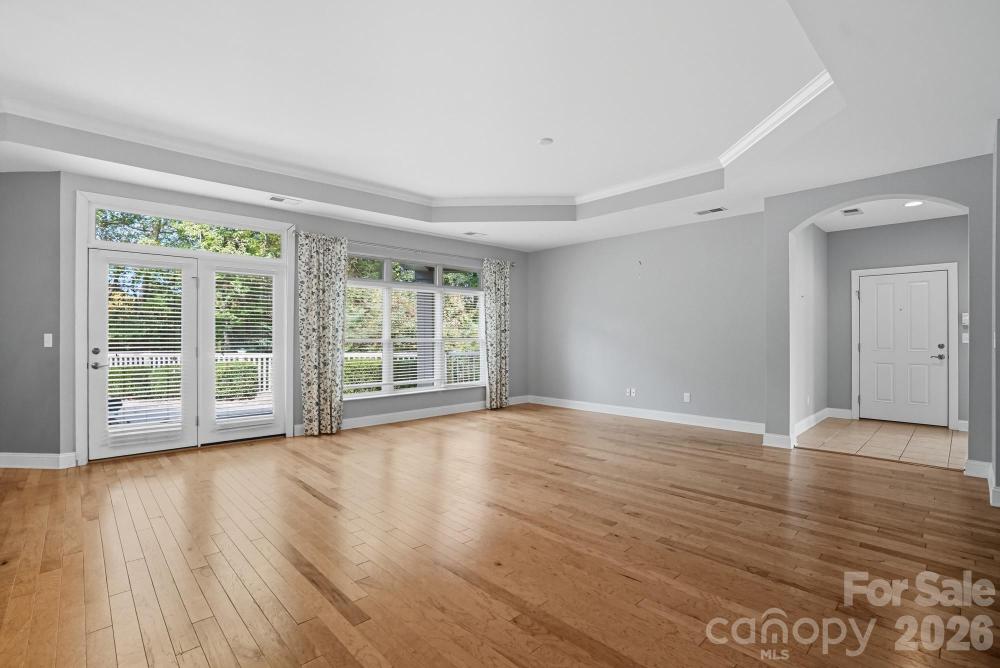 Welcome to this 2-bedroom, 2-bath home in one of the area’s most sought-after communities! Step inside to the desirable Courtyard style home with an open floorplan featuring hardwood floors throughout the main living areas. The living room features elegant tray ceilings and flows seamlessly into the kitchen, complete with granite countertops, a spacious island, and plenty of storage. The primary suite boasts its own tray ceiling, a walk-in closet, and a spa-like bath with an open walled shower and dual vanities. A second full bedroom and bath provide comfort and privacy for guests. Outside, enjoy a 2-car garage along with ample driveway and street parking. The community itself offers resort-style amenities including a pool, clubhouse with full kitchen, pool table, and abundant seating for gatherings. This home combines style, convenience, and community living in a neighborhood everyone wants to call home. The neighborhood backs up to the gorgeous Col. Francis Beatty Park. Only insurance needed is HO6 policy, which is substantially less expensive than traditional home owners insurance.