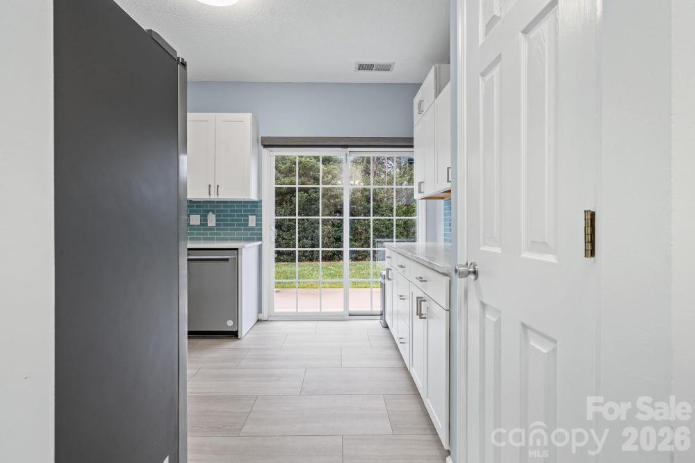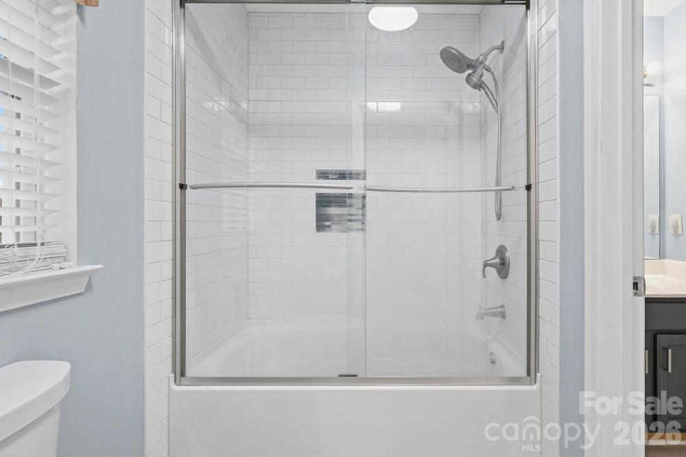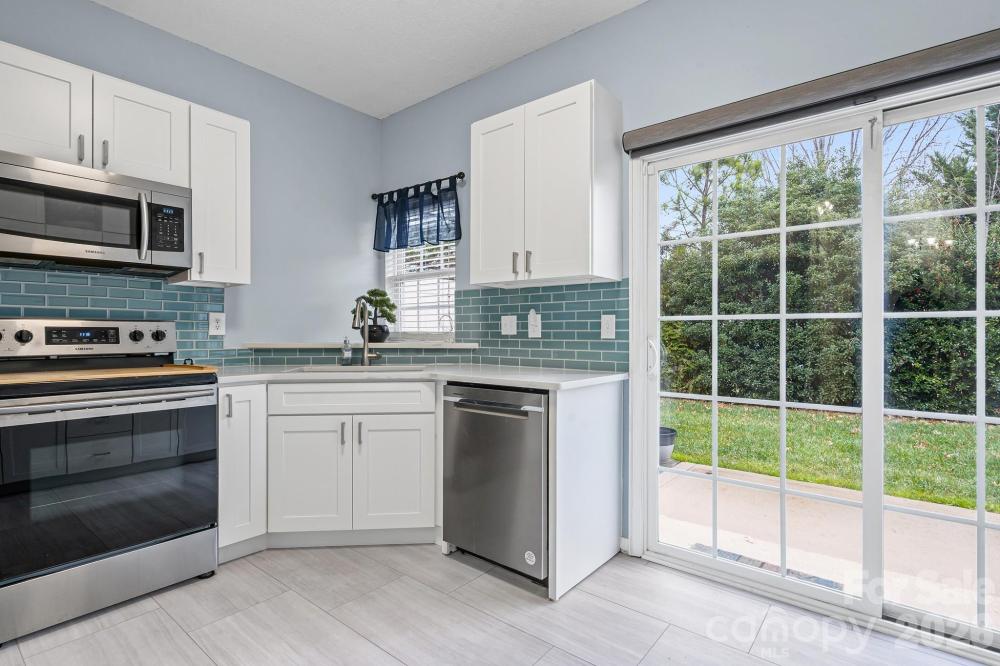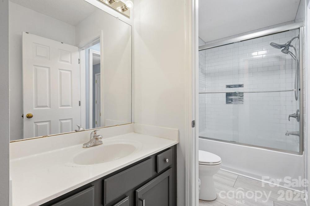 Welcome home to this beautifully renovated townhome with numerous recent upgrades throughout that distinctly make it stand apart from the other available units in the community. Brand new professional interior paint job throughout! Great mechanical condition - 2018 Architectural roof and 2016 HVAC. The front door opens to a stunning two story great room showcasing upgraded 2017 Pergo laminate floors, 2020 Plantation shutters for privacy, and custom built in shelves leading to an added storage closet under staircase. The adjoining dining room makes this a great floor plan for entertaining guests and hosting gatherings. New 2025 kitchen remodel boasts new "soft close" white shaker cabinets, new sleek quartz countertops, large single basin undermount sink, custom tile backsplash, and added butlers pantry providing valuable kitchen storage and counterspace. The renovated kitchen also features replaced 2023 tile flooring, 2024 dishwasher, 2025 disposal, 2018 stainless steel stove, and 2020 custom roller shade for sliding glass doors leading to private patio. Flexible floor plan with primary bedroom located on the main level with option of second primary bedroom upstairs. The lower primary bedroom offers a 2023 remodeled bathroom with custom tile walk in shower stall, modern glass doors, upgraded commode, replaced vanity, tile floors, mirror, lighting, and exhaust fan. The attractive exposed staircase and catwalk open to a flexible upstairs loft perfect for a home office or second den. The second bedroom is highlighted by a large walk in closet, separate dressing area with private sink, and direct access to the upstairs full bathroom. The upstairs jack and jill bathroom has also been tastefully renovated in 2023 to include new tile floors, new soaking bath tub, custom tile surround, refreshed cabinetry, and replaced commode. The second level also includes a good sized third bedroom and spacious walk in laundry room with custom drop down folding table. The carpet in the unit was replaced in 2017 and has been professionally cleaned for marketing. The convenient half bathroom for guest located on the main level has also been updated with a 2023 renovation including new tile floors, vanity, commode, lighting, and mirror. Extend your living areas outdoors on the relaxing rear patio overlooking treelined common area. This unit has a premium location in the community with the community pool being just steps away from the unit.