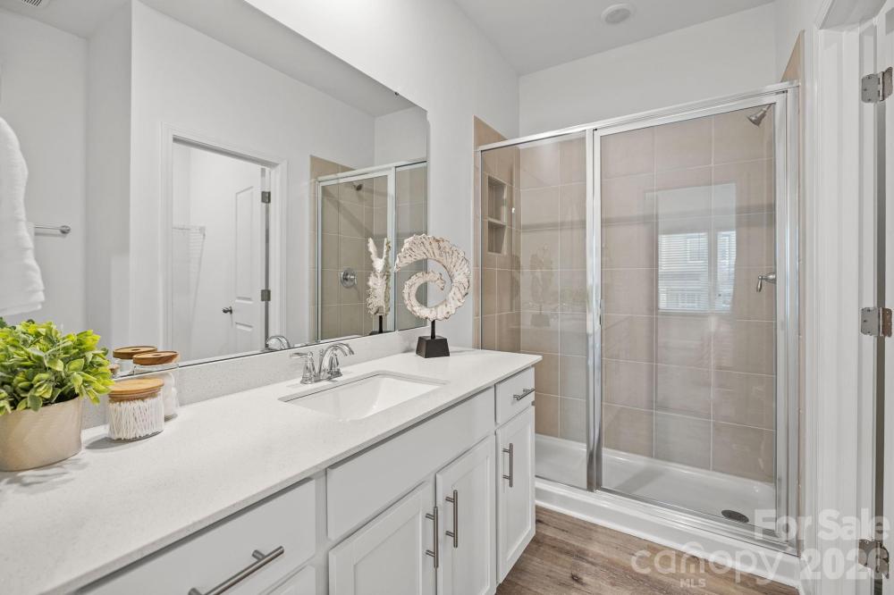 This duet lives like single family home with lots of windows and light! Move-in ready. Ask about our flex $ incentive. NEW FLOORPLAN INCLUDES SEPARATE DINING AREA. Only 2 miles from charming downtown Matthews! Only 62 homes in this quaint community. 3 bedrooms with designated office space off primary bedroom, open plan with drop zone off rear load garage. Alley streets behind with green spaces and hammock stations in and around front yard. Designer-inspired interiors with 42" kitchen cabinets, granite countertops, stainless steel appliance package, luxury vinyl plank floors on main, recessed LED. Amenities include walking trails,sidewalks, playground and bark park. HOA dues include water, sewer and all lawn maintenance!
