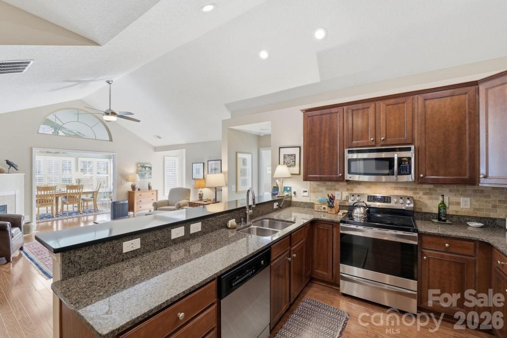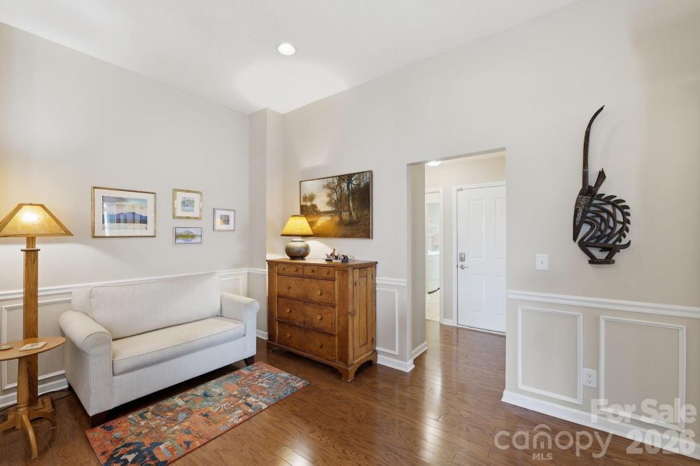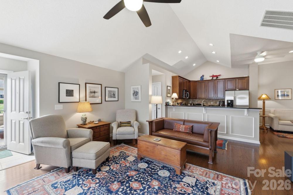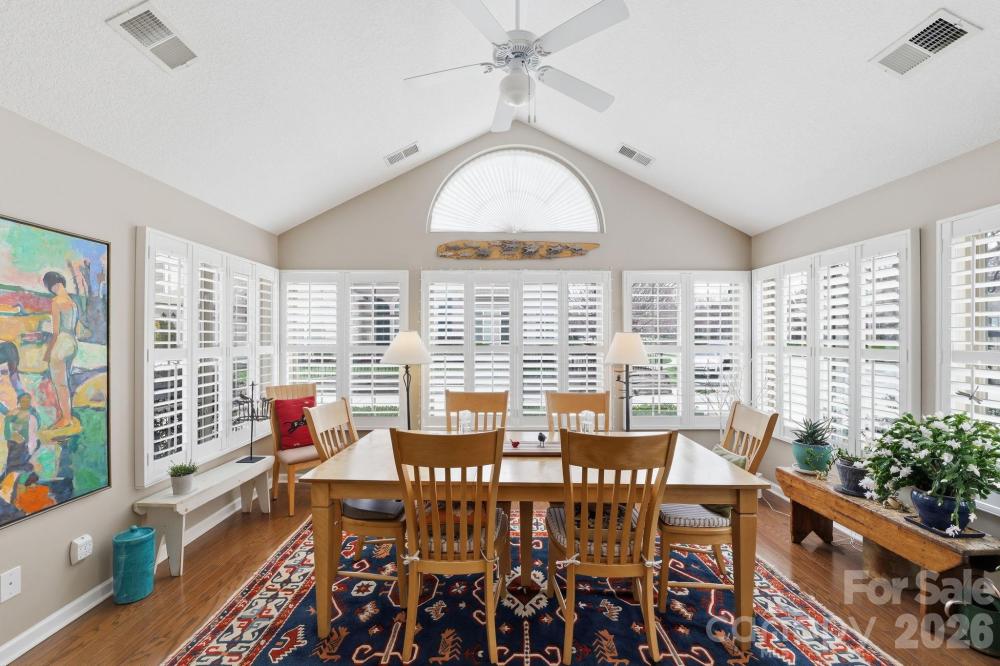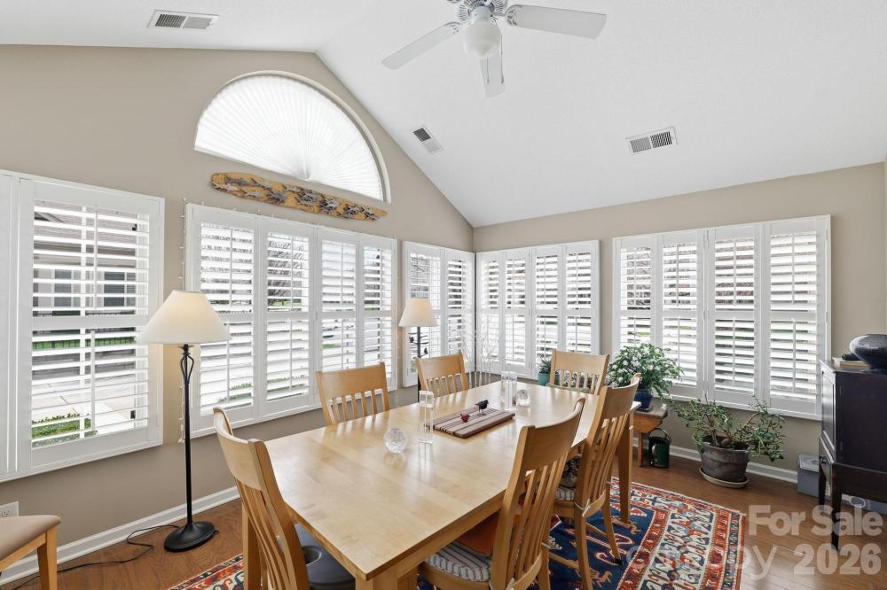 Relax, unwind and enjoy the finer things right from your own home at the Polo Club at Weddington. This all inclusive community provides coverage for your lawn care, exterior maintenance, water, electricity, trash removal, neighborhood pool and more! 3515 S Bank Ct. is tucked in the back of the neighborhood surrounded by green space while backing right up to the access of the beautiful Colonel Francis Beatty Park. A true retreat from the hustle and bustle of all the shops, dining, and grocery stores that are still just minutes away. This home features 2 oversized bedrooms and 2 full bathrooms, an open concept kitchen with stainless appliances and hardwood flooring throughout the living space. Vaulted Ceilings throughout with fresh paint and plantation shutters bring in abundant natural lighting to every room. Custom shelving added to the area off the kitchen has created a secondary living space or reading nook. The large front facing sunroom has been used for a full size dining space, but can easily be converted to a separated space by re attaching the glass french doors. There is no lack of storage here with a large pantry closet off the kitchen, as well as a large utility closet in the oversized laundry room. Schedule your showing today and imagine yourself living a true life of paradise!