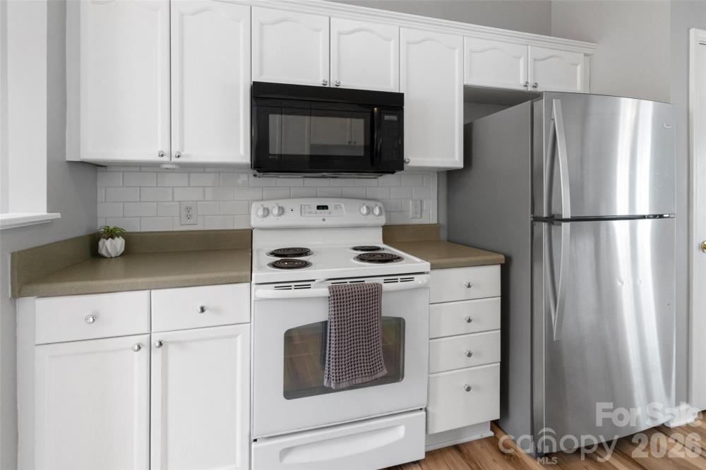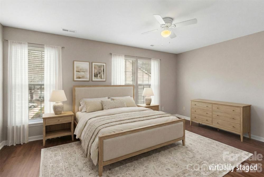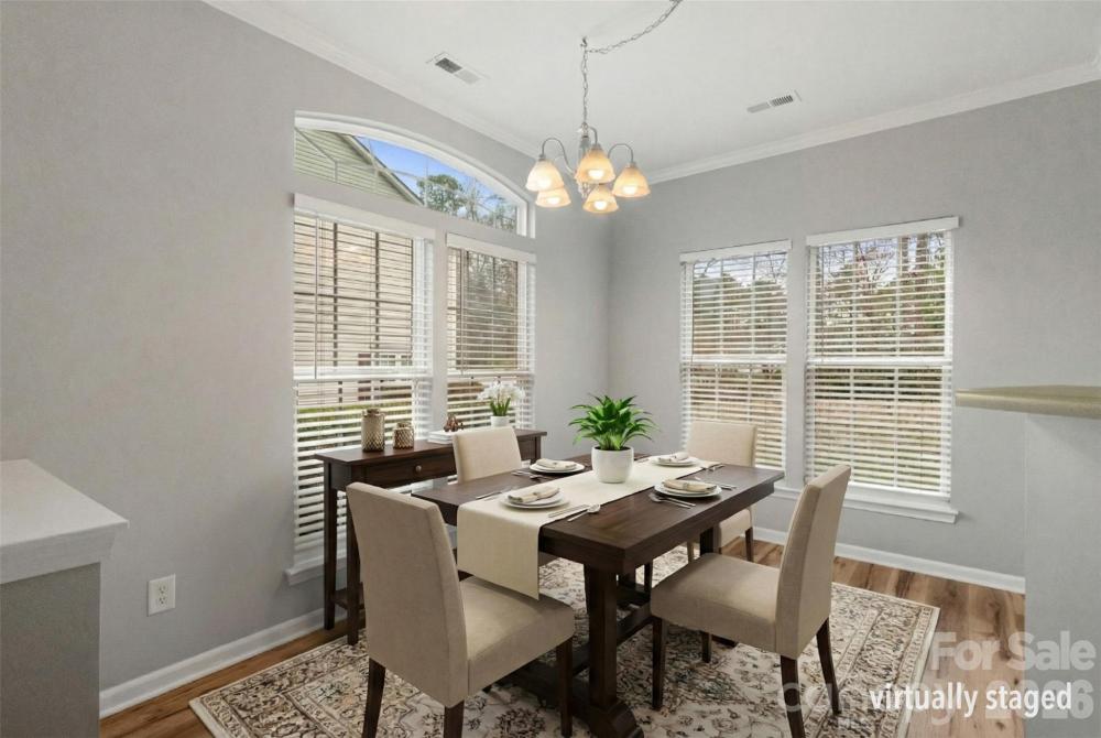 NEW PRICE AND NEW FLOORING DOWNSTAIRS!!!! Step inside your new beginning with this truly wonderful end unit townhome, perfectly situated in a prime Matthews location. This home boasts a thoughtfully designed layout with expansive living space on the main level, bathed in an abundance of natural light that creates a warm and inviting atmosphere. The heart of the home, the kitchen, is a chef's delight, offering generous counter space for effortless meal preparation, a charming breakfast nook with a convenient bar for casual dining, and ample storage solutions for all your culinary gadgets and pantry essentials. Ascend to the upper level where you'll discover two generously sized bedrooms, each featuring its own private ensuite bathroom for ultimate comfort and privacy. The primary bedroom is a true sanctuary, highlighted by a supersized walk-in closet that provides exceptional storage, and a luxurious, oversized walk-in shower designed for a spa-like experience. Outside, unwind and entertain on the private back patio, offering serene views of nature, perfect for enjoying your morning coffee or evening relaxation. Come discover what the perfect location looks like, with unparalleled convenience to a myriad of shopping and dining options, and seamless access to Highway 485, Downtown Matthews, Indian Trail, and Monroe.