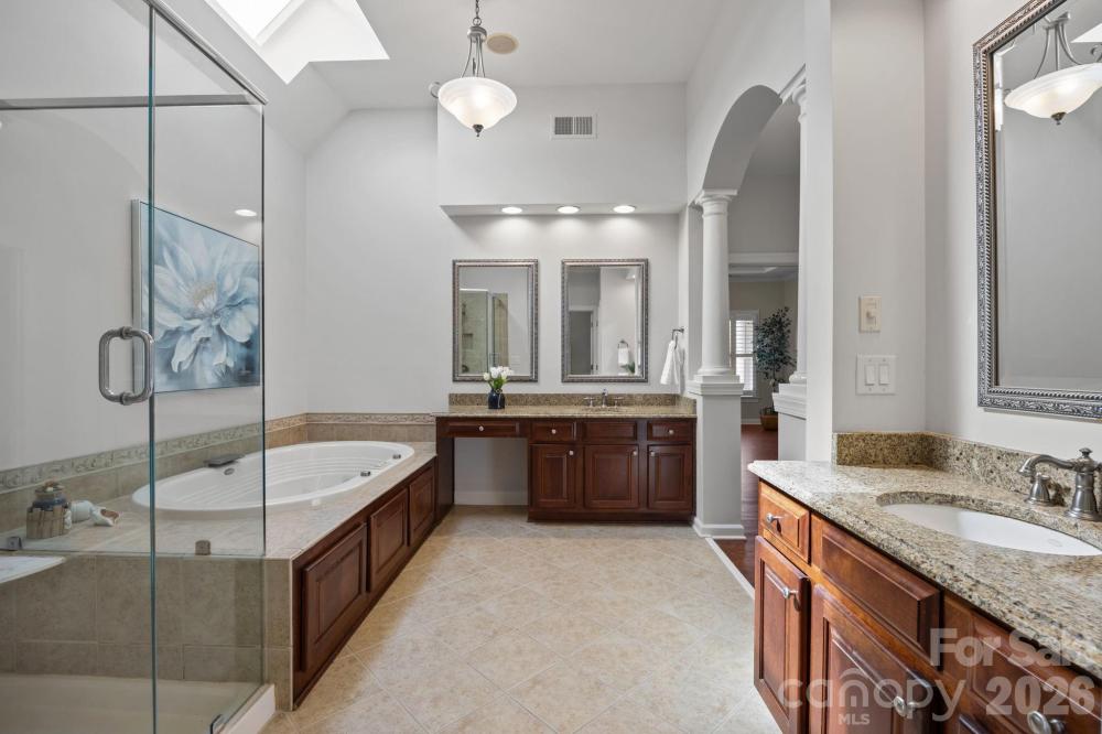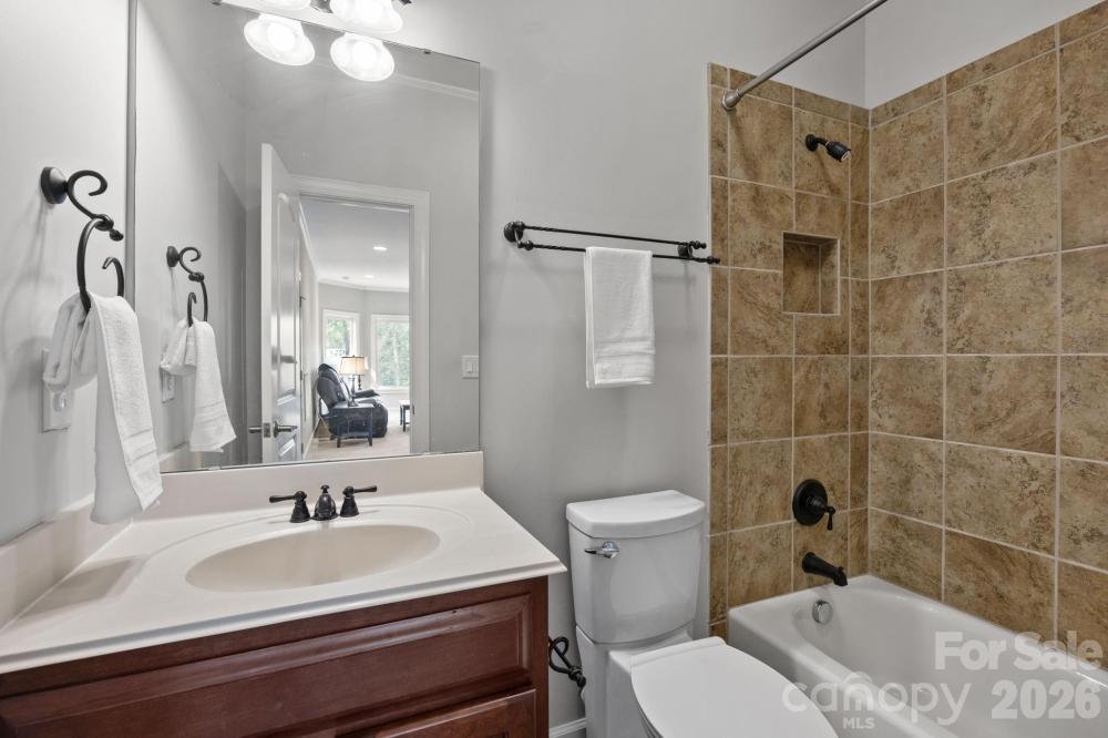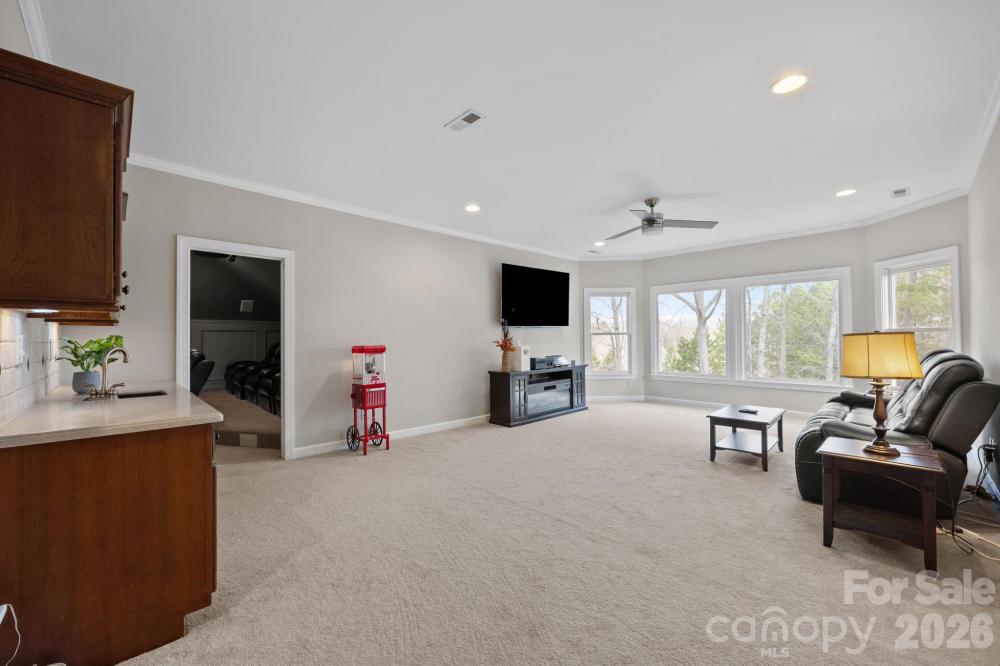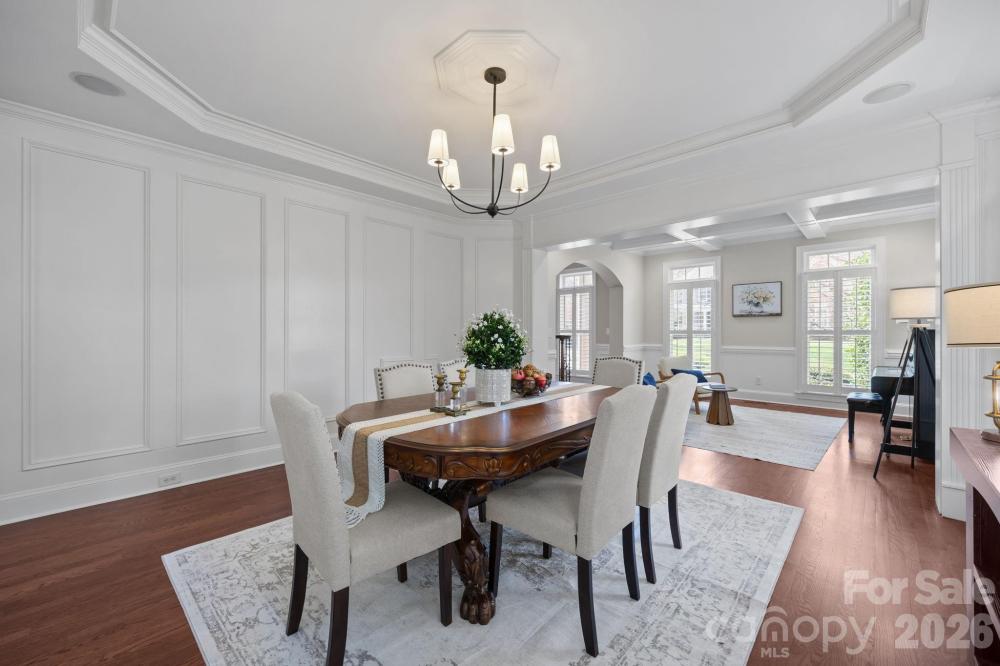 Welcome to a home where timeless architecture, thoughtful upgrades, and exceptional community amenities come together in one of Weddington’s most sought-after neighborhoods. Located in the top-rated Weddington school district, this home sits adjacent to the scenic trail entrance leading directly to Antioch Elementary School, allowing families to enjoy an easy morning walk while avoiding school traffic. This impressive three-story John Wieland Windsor floor plan makes a striking first impression with stately pillars, a welcoming front porch, and heavy-duty double iron entry doors with operable glass panels, allowing you to greet guests and enjoy fresh air without stepping outside. Inside, 8-foot doors on the main level, plantation shutters, over 4,000 sq ft of refinished or updated flooring, and custom hand-refinished stairs and railings highlight the home’s craftsmanship. The chef-inspired kitchen features premium Bosch appliances, an expansive island, abundant cabinetry, and a bright breakfast area overlooking the private backyard. A secondary kitchen workspace in the garage with cabinetry, countertops, and refrigerator water line hookup provides added convenience for cooking or entertaining. The main level also includes a private guest suite with full bath, ideal for visitors or multigenerational living. Upstairs, the luxurious primary suite offers plantation shutters, a spa-inspired bath, and two custom closets, along with a versatile flex room perfect for a nursery or home office. A dedicated fitness room with professional gym flooring can easily convert to an additional bedroom. Two additional bedrooms complete the level, including one with an ensuite bath. The third floor features a professional home theater with Dolby Atmos surround sound, designed to contain sound and minimize noise to lower floors, creating the ultimate cinematic experience without disrupting the rest of the home. Additional highlights include an encapsulated crawl space for improved energy efficiency, foundation protection, and year-round storage, along with multiple walk-in attic storage areas. Residents enjoy resort-style amenities just steps away, including a clubhouse, lazy river, wading pool, tennis courts, covered pavilion, and scenic walking trails.