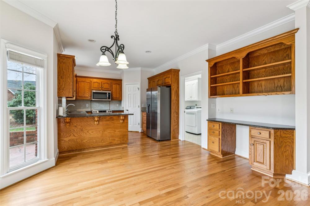 Beautifully maintained all- brick home featuring a dramatic two-story great room with fireplace. The main level offers a dining room with molding details, spacious kitchen with granite countertops, tile backsplash, loads of cabinets, pantry, and a breakfast area with built-in bookcase and desk. Laundry room includes cabinets, sink and a broom closet. The primary bedroom features an ensuite bath, plus a convenient half bath on main floor. Upstairs includes three additional bedrooms, a bonus room with attic storage access, and a full bath. New carpet and fresh interior paint throughout. Two- car garage. Covered front porch and rear concrete patio with brick-lined surround wall complete the home. New water heater (Jan 2023) Well Maintained Home with HVAC serviced yearly with Morris Jenkins: lawn care by Spring Green: pest plan with Crown Pest Control.