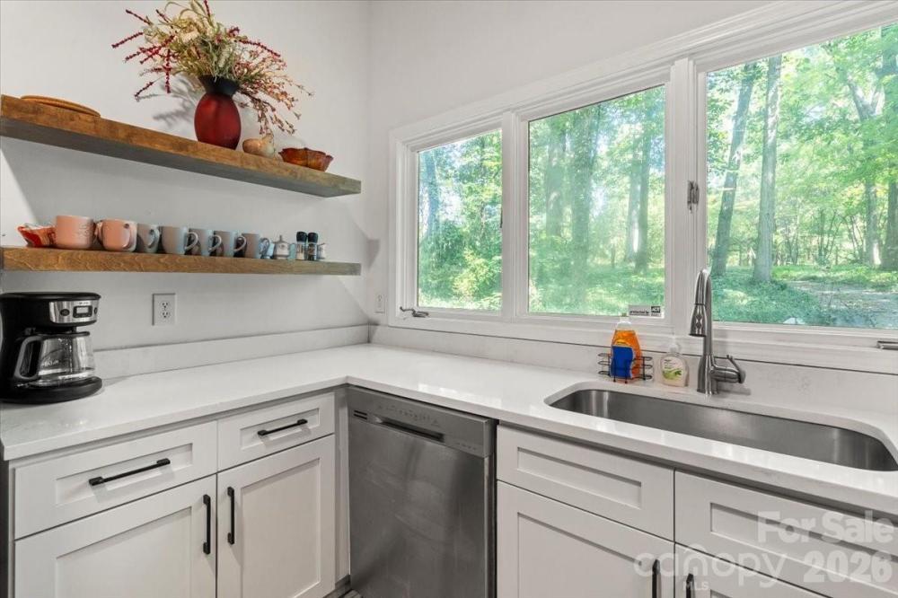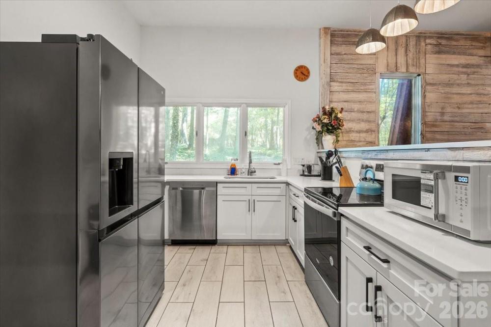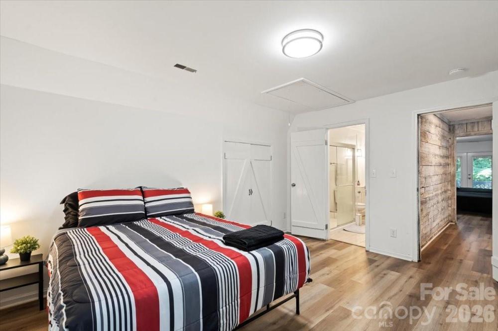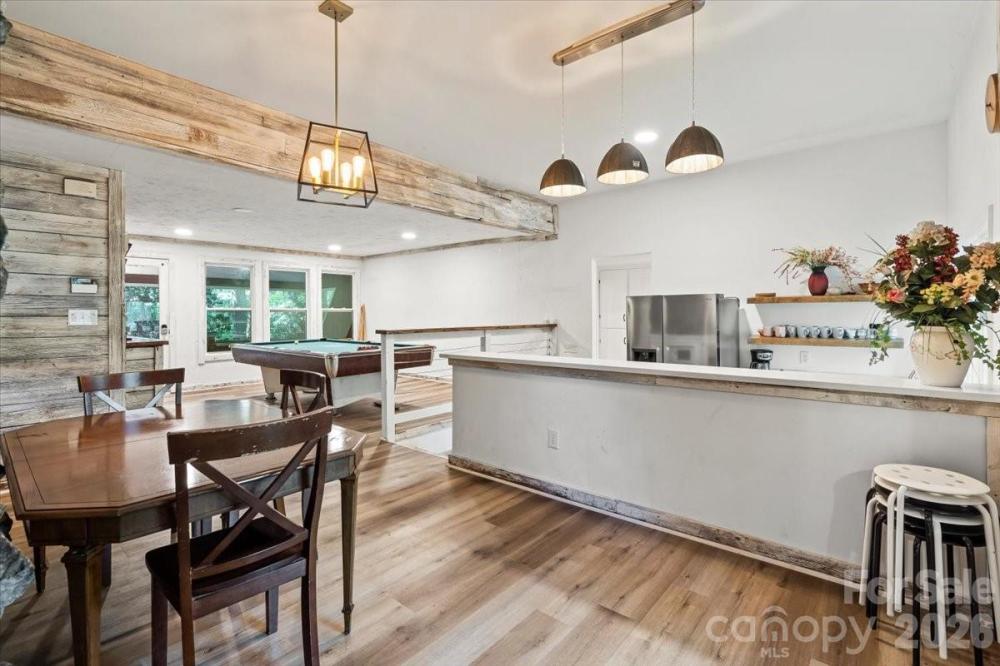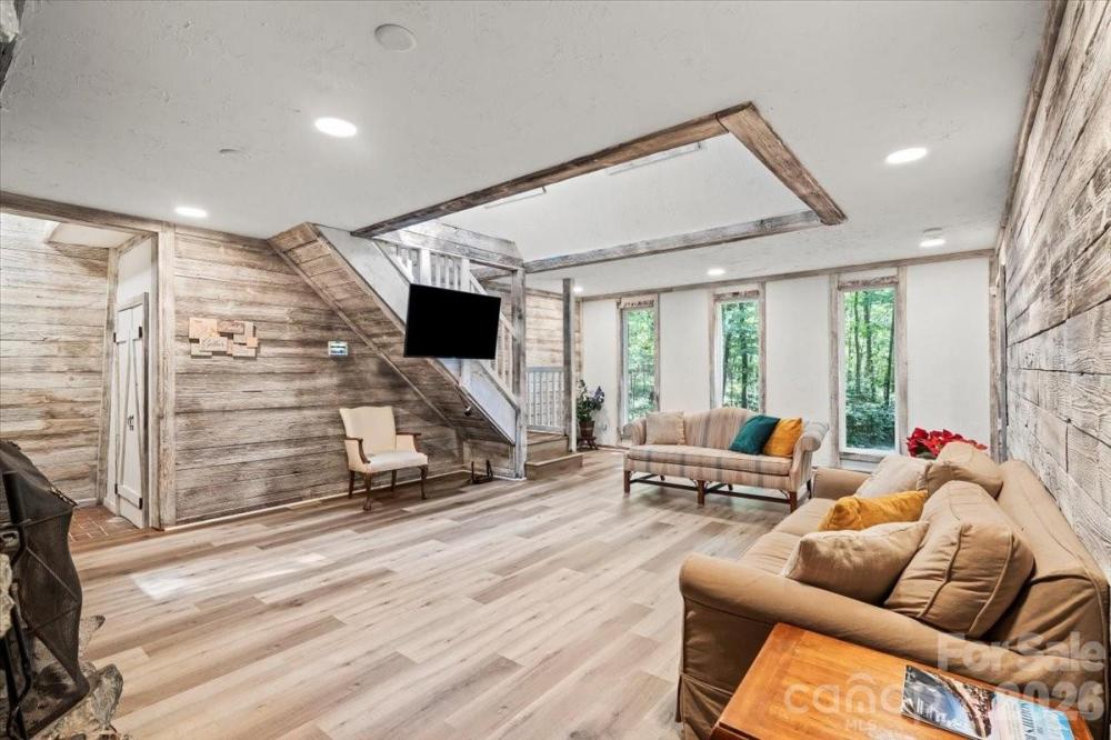 Retreat from the hustle and bustle! Just minutes away from I-485, this beautiful custom home sits on 5 private acres, offering the perfect balance of convenience and tranquility. Inside, rustic barnwood walls and thoughtful details set the tone. The main level features a sunken kitchen with quartz counters, custom cabinetry, a walk-in pantry with floor-to-ceiling cabinets, laundry room, game room (pool table included!), full and half bath with stained-glass windows, unfinished basement, and a stunning great room with skylights and a soaring 2-story stone fireplace. Upstairs, enjoy a loft sitting area overlooking the great room, 3 oversized bedrooms with 2 full bathroom plus a spacious master suite with built-ins, walk-in closet, abundant natural light, private bath, and access to a large deck with sweeping views of the property. Outside, the gated driveway opens to ample parking and a barn—perfect for gardening, hobbies, or extra storage. Relax on the deck and watch deer gather nearby, or cultivate your dream garden in the open acreage. Whether you’re looking for a peaceful retreat, a place to work from home, or a unique property with room to grow—this home is the perfect fit.