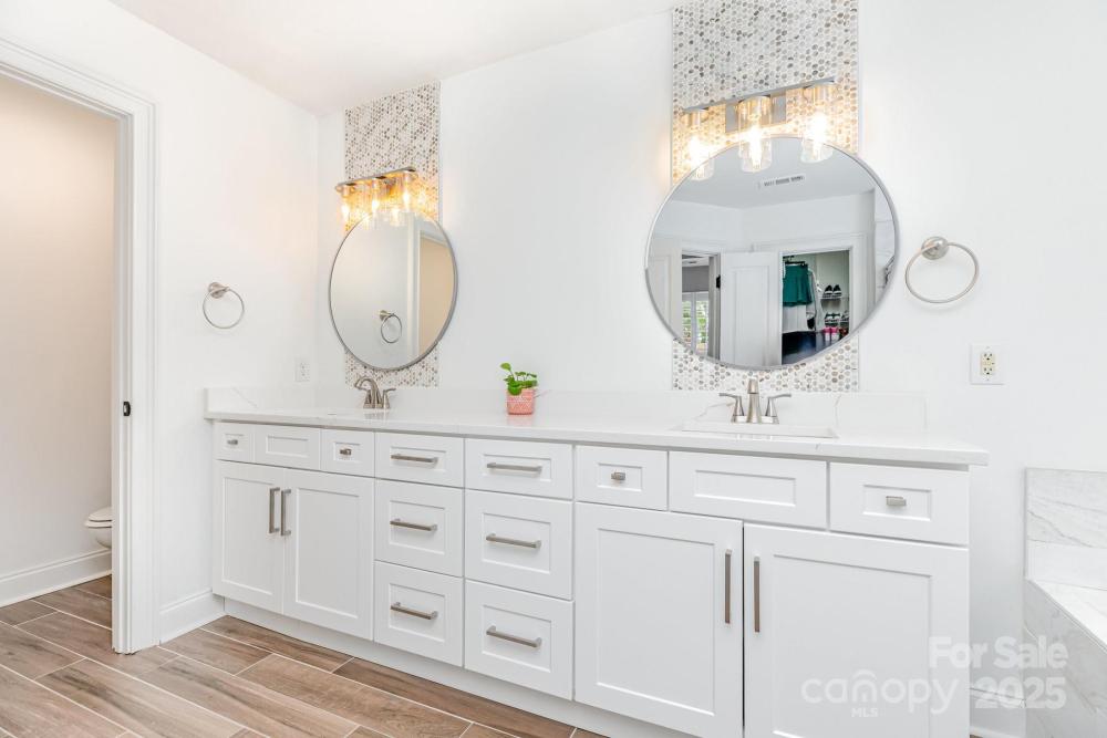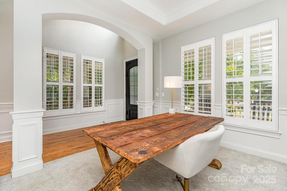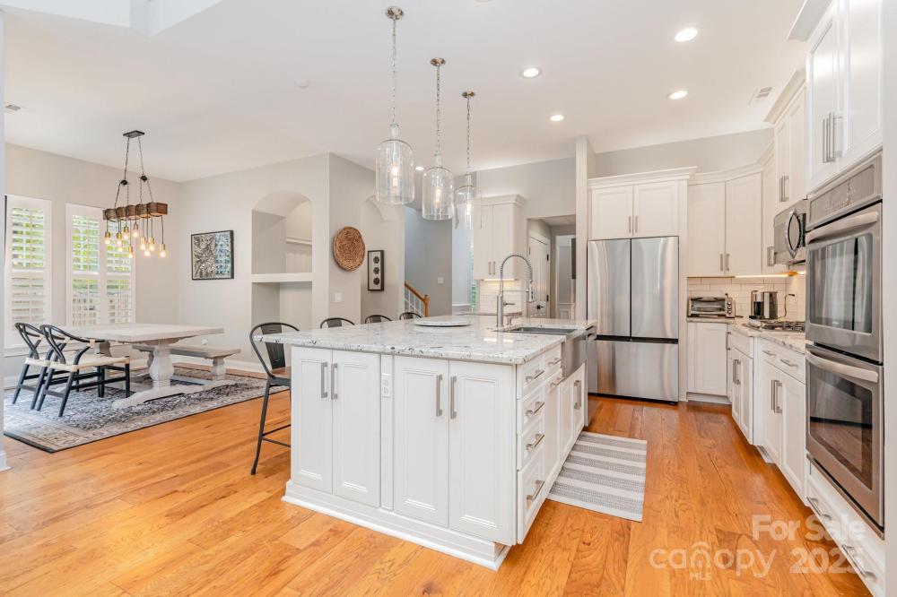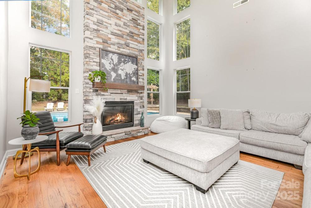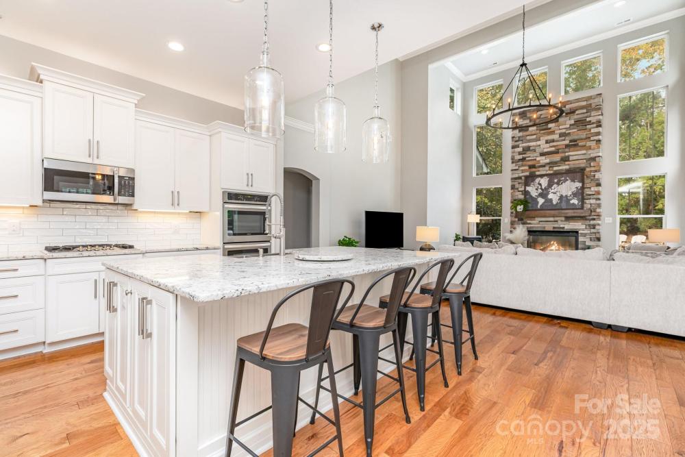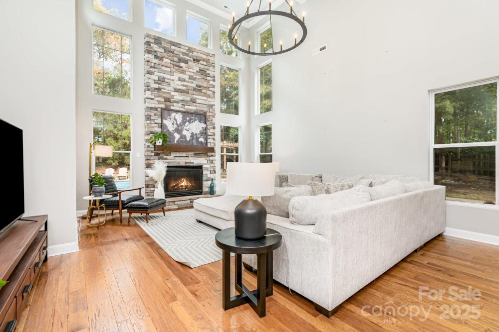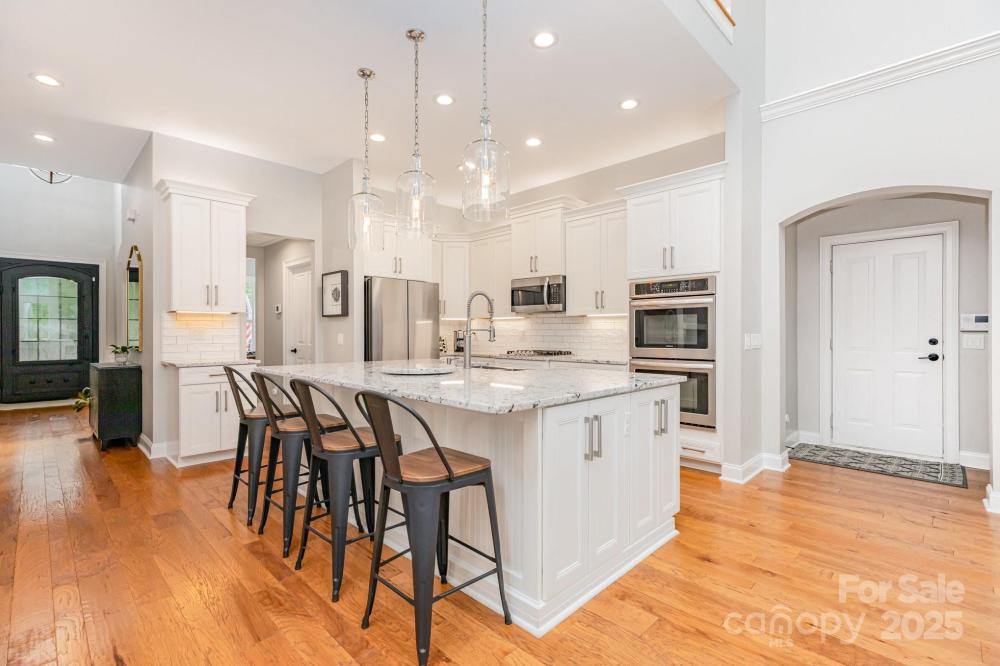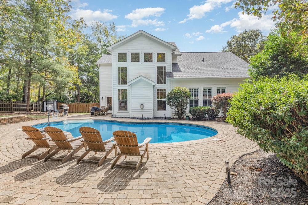Experience this remarkable residence nestled at the end of an esteemed cul-de-sac, just a stone's throw from Village Commons, where delightful shopping and dining await. The home showcases a charming arts and crafts aesthetic, highlighted by pristine white hardboard siding, partial metal roofing, and elegant stone accents on the inviting front porch. A striking custom wrought iron door sets the tone for the interior, which boasts a grand two-story foyer, exquisite light fixtures, and graceful arched doorways. At the core of the home is a breathtaking chef-inspired kitchen, complete with ample storage, a spacious island, and an open layout that flows effortlessly into the impressive great room. On cooler evenings, gather around the fireplace for a cozy movie night or a good book. The main-floor primary suite serves as a tranquil haven, featuring a generous walk-in closet, a standalone shower, and a luxurious soaking tub ideal for relaxation. Upstairs, three additional bedrooms and a flexible bonus room offer versatility, while the backyard transforms into an enchanting outdoor retreat, perfect for entertaining during the warmer months. With a stunning pool and a fireplace, it’s an ideal space to unwind and enjoy the soothing sounds of nature. Welcome home!