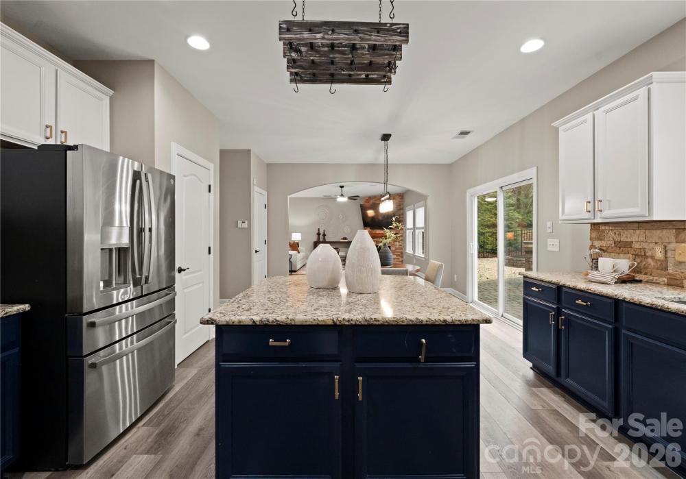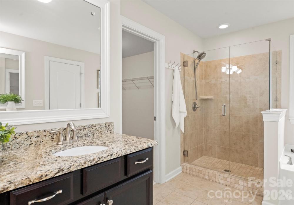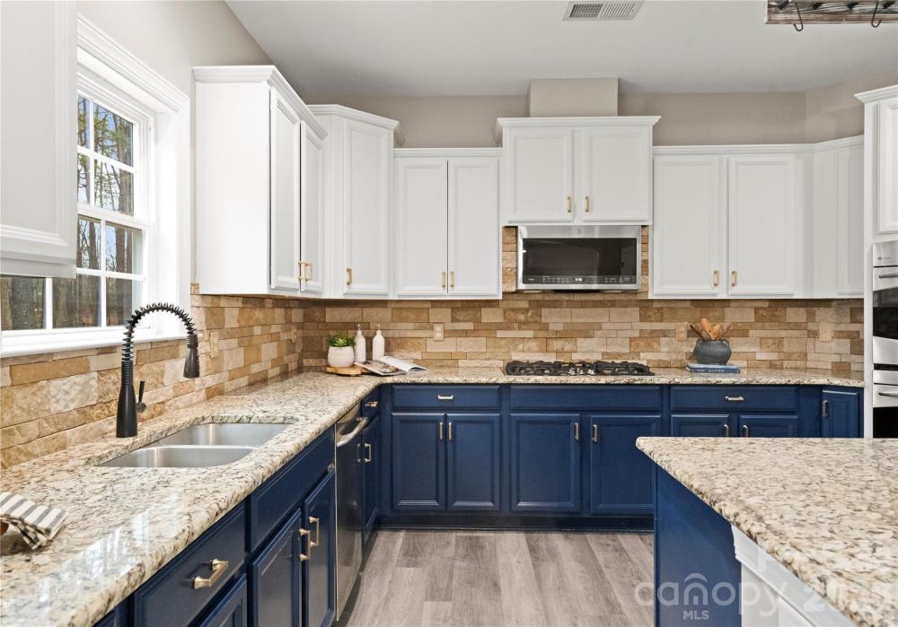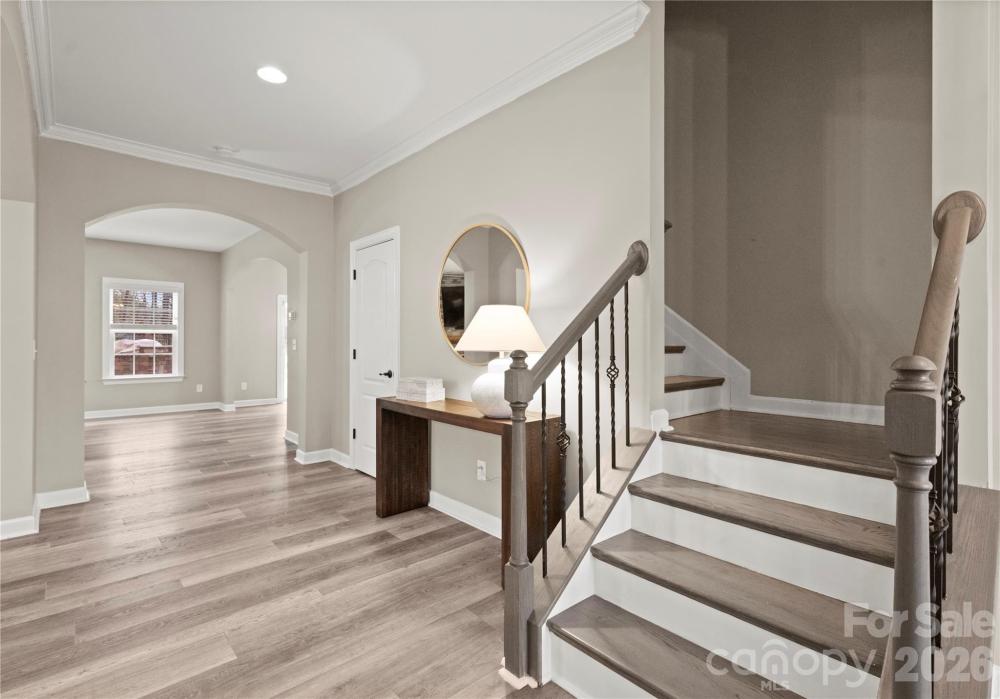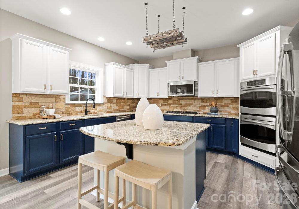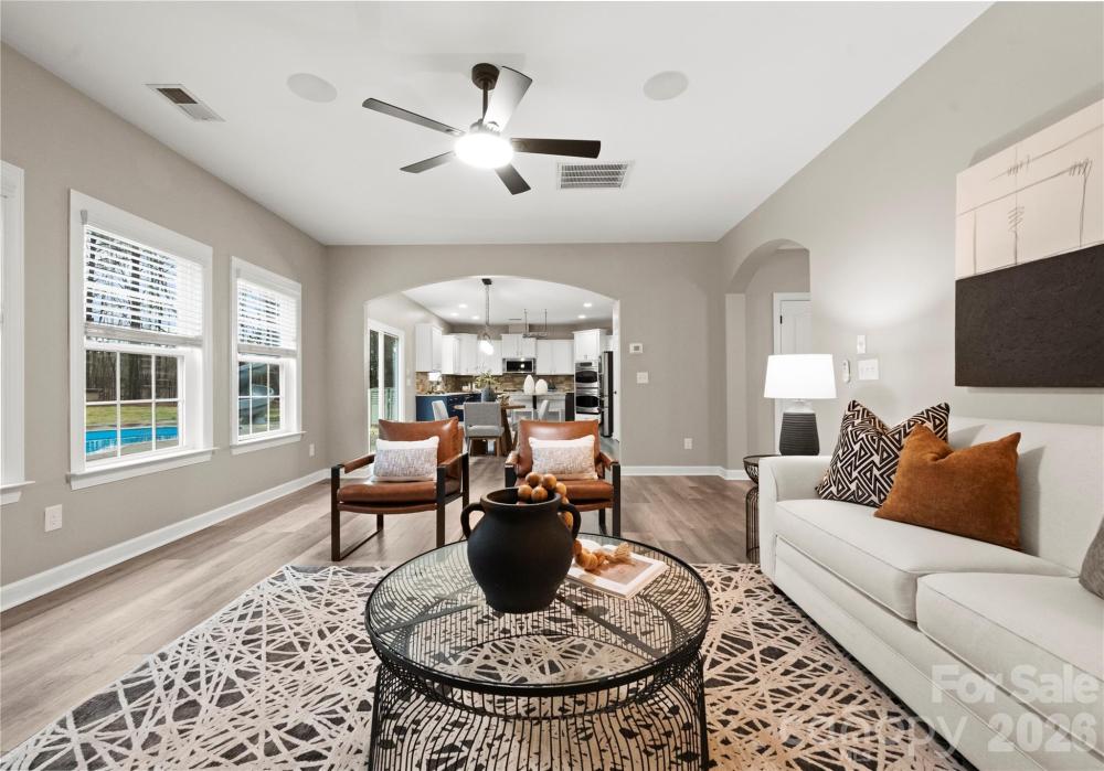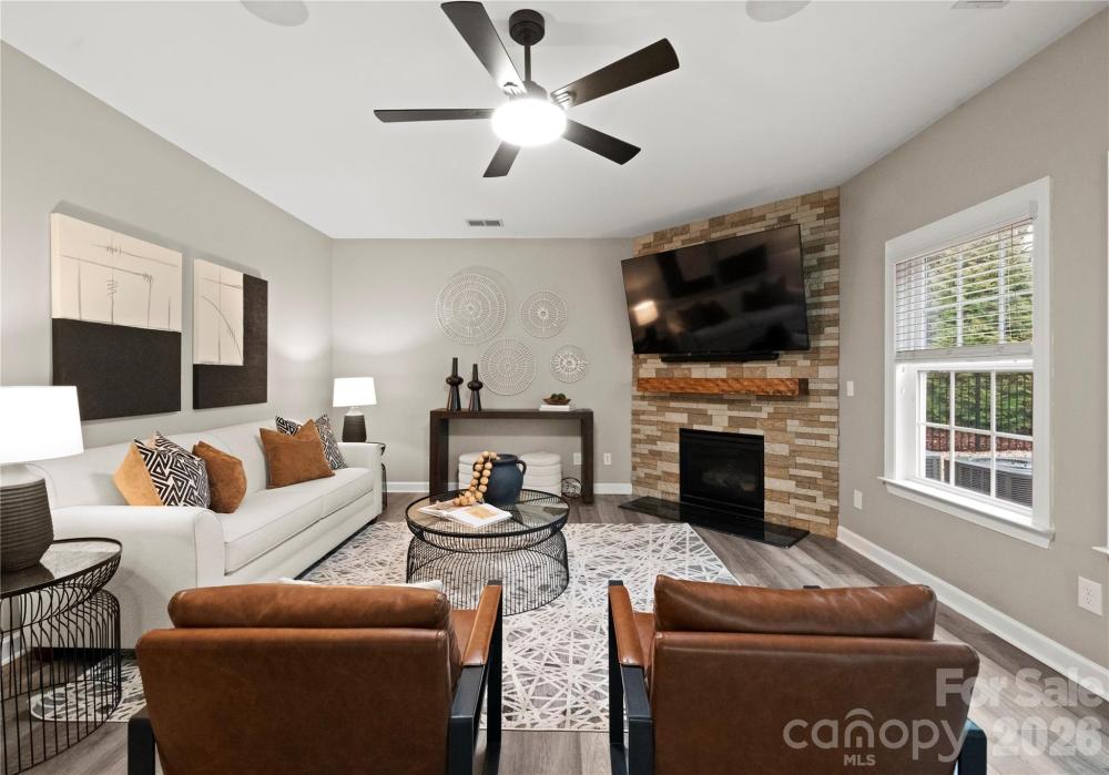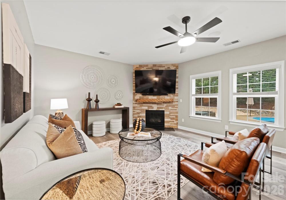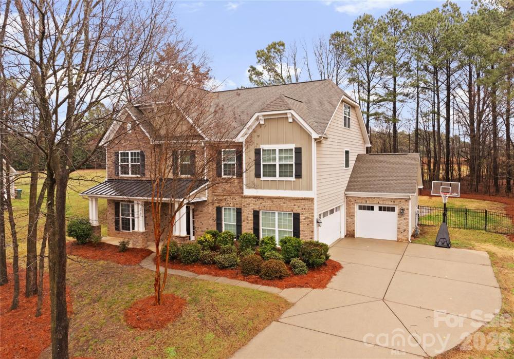 Welcome to this inviting rocking-chair front porch home where everyday living feels like a retreat. Step inside onto luxury waterproof flooring throughout the main level and discover a layout thoughtfully designed for both connection and comfort. A dedicated first-floor office provides the perfect work-from-home space or quiet study, offering flexibility without sacrificing flow. The heart of the home is a custom kitchen with a generous island and striking stone backsplash, opening effortlessly to the inviting family room featuring upgraded stonework surrounding the gas fireplace — ideal for cozy evenings or hosting friends and family. Upstairs, the primary suite serves as a private sanctuary, offering generous space, natural light, and a spa-inspired bath designed for relaxation at the end of the day. Additional secondary bedrooms provide comfort and versatility for family or guests. The third-floor bonus retreat adds even more flexibility, complete with a private bedroom and full bath — perfect for guests, a teen suite, media room, or extended-stay visitors. Outdoors, your lifestyle truly elevates. Situated on one of the largest lots in the neighborhood, the backyard feels like a private resort featuring a custom saltwater heated pool with hot tub, in-pool seating, and water slide, along with a fully equipped outdoor kitchen designed for effortless entertaining. The built-in Sonos sound system enhances every moment, inside and out, creating the ultimate setting for gatherings year-round. Located in a sought-after Matthews community within walking distance to downtown Matthews and the greenway, with easy access to local shops, dining, and everyday conveniences, this home blends warmth, functionality, and resort-style living into one exceptional opportunity.