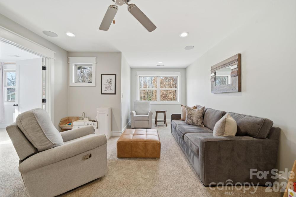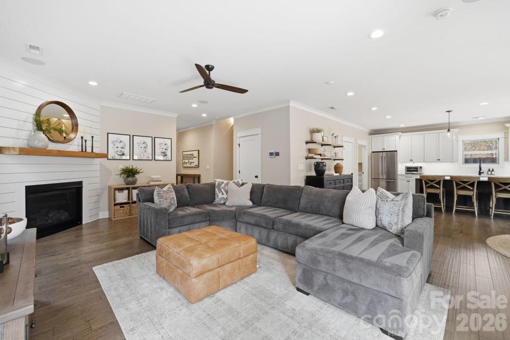 Updated and thoughtfully enhanced modern farmhouse-style home offering 4 bedrooms, 4.5 baths, and approx. 3,036 sq ft with a bright, open layout designed for everyday living and easy entertaining. The main level welcomes you with wide-plank flooring, a private office, and a dining room accented by custom board-and-batten added in 2023, flowing seamlessly into a spacious living room with gas fireplace and custom shelving. The kitchen anchors the home with a large island, walk-in pantry, gas range, stainless appliances, and additional custom shelving added in 2023 for both style and function. Step outside to a covered porch overlooking a fenced backyard where large obstructing trees were removed in 2020, new sod installed, and a paver patio added to create a usable outdoor living space, while the fence was also stained for durability and curb appeal. Upstairs features a generous loft, secondary bedrooms with well-appointed baths, and a serene primary suite with tray ceiling, spa-inspired bath including soaking tub, glass-enclosed shower, dual vanities, and walk-in closet. Exterior improvements include new rock landscaping installed in 2021 replacing mulch, full exterior repaint in 2022, and upgraded front pillars converted to stained exposed beams, enhancing the home’s modern farmhouse character. Additional highlights include main-level laundry, attached two-car garage, surround sound wiring, and added attic insulation in 2025 for improved efficiency, reflecting years of intentional updates that elevate both comfort and style.