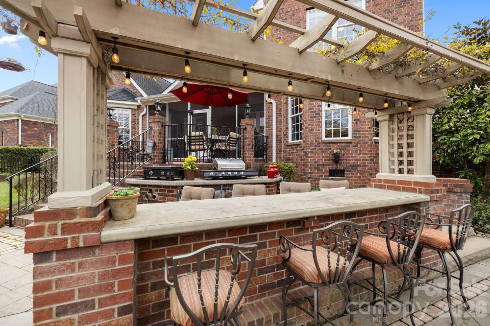 This five-bedroom, four-and-a-half-bathroom full brick home is located in the prestigious Emerald Lake golf community. This home features an open floor plan with a dedicated office, great room with fireplace, dining room, breakfast area and kitchen with island, tiled backsplash and under cabinet lighting - plenty of room for entertaining. The primary bedroom suite with custom closet system is conveniently situated on the first floor and showcases a tiled shower with double shower heads and a jetted tub. On the second level you'll find four additional bedrooms and a bonus room - don't miss the attic access through the closet in the upstairs bedroom on the right. The fabulous fenced backyard is where you'll want to live - a screened porch, multi-level seating areas, large grilling space, water feature and a view of the golf course. The three car garage provides extra storage space. Enjoy golfing, clubhouse for dinner and drinks, playground and sidewalks in Emerald Lake. It's so close to restaurants, groceries, doctors, and I485! Roof 2014, downstairs HVAC 2025. Home warranty for peace of mind! Low HOA! See attached list for updates throughout the owners' time here.