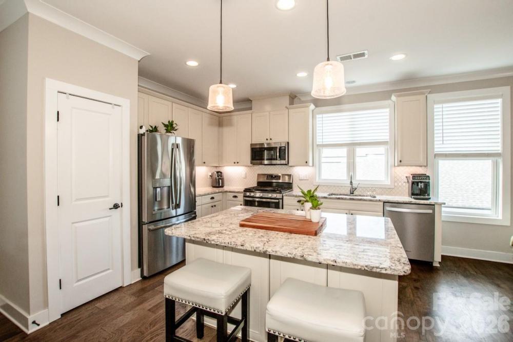 Absolutely stunning, sought-after, 3 bedroom 2 ½ bath end unit townhome in the Villas at Morrison Plantation located close to shopping and dining. Enter through the gated courtyard to step inside this inviting open floor plan where you’ll appreciate the natural light, 9-foot ceilings, crown moldings and a spacious flow of the main floor. Experience a large living area that seamlessly connects to the dining area and a view of the chef inspired kitchen. Kitchen boasts a large island with seating, 42" cabinets, quartz countertops, premium stainless-steel appliances including a gas range with double ovens and a large pantry. Plus, enjoy a sitting area/breakfast area adjacent to the kitchen which adds even more space to entertain. The main floor is complete with a charming powder room and a drop space at the base of the stairs. Upstairs you’ll find a luxurious Primary Bedroom with en-suite bath with a large walk-in shower and dual sinks, plus a large walk-in closet. Two additional bedrooms, a hallway bath and laundry closet complete the upper floor. Unit has a two-car, attached garage with garage door opener. Lower level can be used as rec room, office, workshop, or possibly a 4th bedroom. Superb home, great location and low maintenance living!