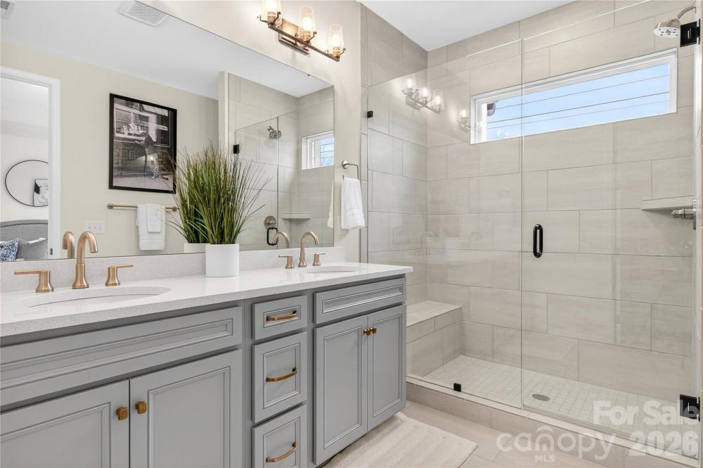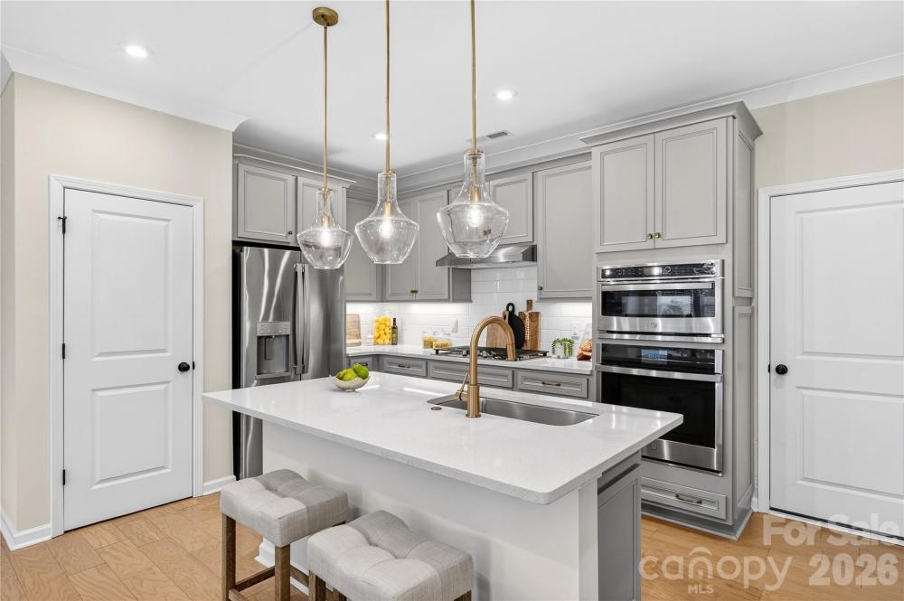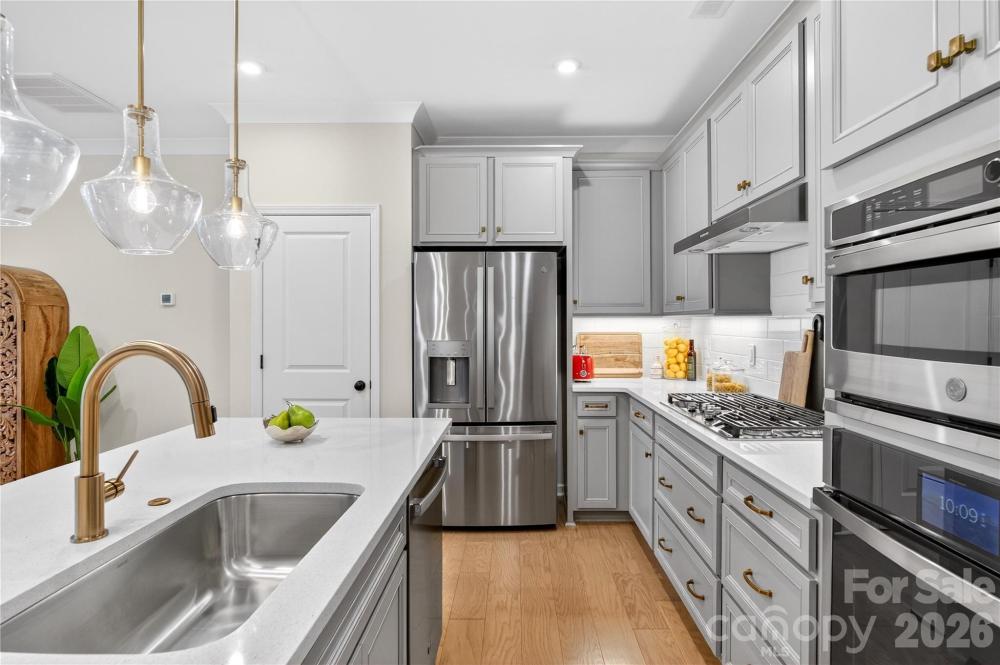 Welcome to this beautifully upgraded former model townhome on Brawley School Road, where thoughtful design and refined finishes create a home that feels both elevated and inviting. From the moment you step inside, you’ll notice the attention to detail throughout. White oak hardwood floors run through the main living areas and continue up the staircase, where the stair rail has been upgraded to complement the warm natural tones. The open-concept living space is filled with natural light, creating a bright and welcoming atmosphere perfect for both everyday living and entertaining. The kitchen serves as the heart of the home, featuring quartz countertops, GE Profile appliances (including the refrigerator), upgraded cabinetry with soft-close drawers, and a center island ideal for gathering. Champagne bronze fixtures and upgraded lighting throughout the home add a sophisticated, designer-inspired touch. The main level also features a beautifully designed powder room with a custom limestone wash wall treatment that adds texture and character. Upstairs, the spacious primary suite showcases an elegant tray ceiling and a large walk-in closet. A thoughtfully added door connects the closet directly to the laundry room, creating a convenient and functional flow rarely found in townhomes. The laundry room also includes added cabinetry for extra storage. A loft area upstairs offers flexible space for a second living area, office, or reading nook. Additional features include nine-foot interior doors, upgraded bathroom tile, fresh interior paint, a drop zone entry from the garage, and a charming front patio perfect for enjoying morning coffee. With its designer finishes, smart layout, and model-home quality upgrades throughout, this home offers a truly move-in-ready opportunity in a desirable Mooresville location.