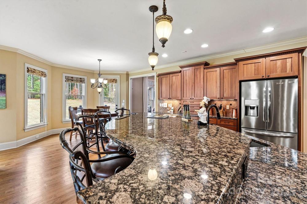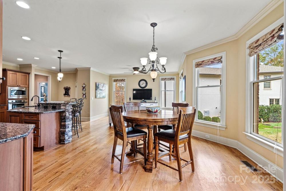 Stunning Full Brick Custom Home in the Lakefront Community of Woodleaf Welcome to this beautiful traditional home nestled in the sought-after lakefront community of Woodleaf. Designed with comfort and elegance in mind, this full-brick custom residence offers exceptional space for both living and entertaining. Featuring 4 bedrooms, 4.5 baths, and a large bonus room with a full ensuite bath, this home provides flexibility for family, guests, or a private home office. The spacious kitchen is a chef’s dream, complete with custom cabinetry, granite countertops, a generous island with eat-in bar seating, and an open layout that flows seamlessly into a cozy sitting area and breakfast nook. The great room boasts soaring ceilings and expansive windows that fill the space with natural light, while a balcony overlook from the second story adds architectural charm. The luxurious master suite offers a vaulted ceiling, abundant light, and space to unwind. The master bath features a large tiled shower with dual shower heads, extensive cabinetry, and two spacious walk-in closets for optimal storage. Upstairs, all bedrooms are generously sized, providing comfort and privacy for everyone. Step outside to a back deck overlooking a deep, beautifully landscaped lot, perfect for outdoor gatherings or quiet evenings. The three-car garage and extensive stone landscaping add to this home’s remarkable curb appeal. Experience quality craftsmanship, timeless style, and the welcoming charm of lakefront living at Woodleaf — this is more than a home, it’s a lifestyle.