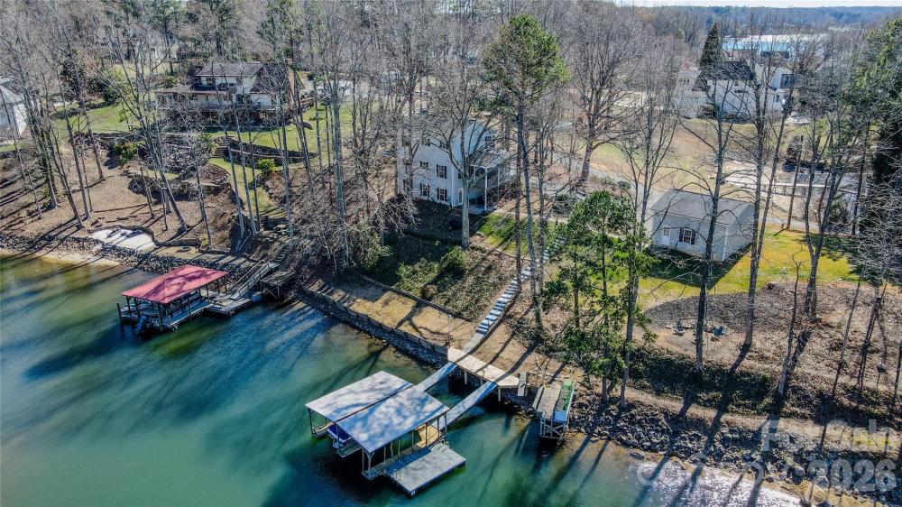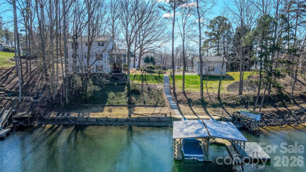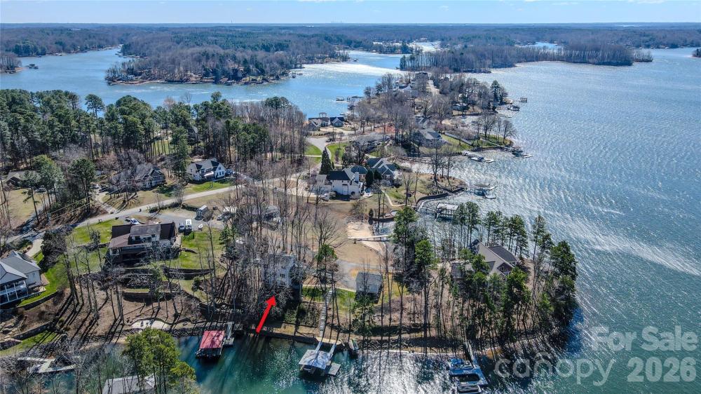 The expression “million-dollar view” truly feels like it was invented for this exceptional peninsula property. From the moment you arrive via the circular driveway, you’re greeted by expansive, sparkling water views that immediately put you at ease — the kind of setting that makes you want to slow down and stay awhile. Perfectly positioned between the channel and a protected cove; this home boasts panoramic water views on both sides, offering a rare blend of openness and privacy. Outdoor living is intuitively designed to capture every angle of the scenery; with a full-length covered front porch, a screened side porch, and a lower covered patio, perfect for grilling, accessed from the finished walk-out basement. A two-slip covered dock provides easy, year-round lake access with water depth suitable for keeping your boat in the water all season. A detached 2.5-car garage offers generous storage and space for a boat trailer. Inside, the home is just as inviting. Gleaming oak hardwood floors span the main level, while the kitchen features stainless steel appliances, recessed lighting, and sightlines to the water. Thanks to the home’s unique placement, lake views can truly be enjoyed from every room. The three-level layout offers exceptional flexibility. The primary bedroom resides on the upper level; as well as additional bedrooms/ flex-living spaces. The fully finished walk-out basement serves beautifully as a second living space; complete with a full bath and laundry room. Two A/C units (one brand new) and a brand-new septic system add peace of mind. Though permitted for two bedrooms, the home includes multiple flexible spaces that can comfortably function as up to four sleeping areas. Set on over half an acre with unmatched views, versatile living spaces, and true lakefront convenience, this is a rare opportunity to own a one-of-a-kind waterfront retreat. No HOA! No city taxes! Close to activities & shopping.