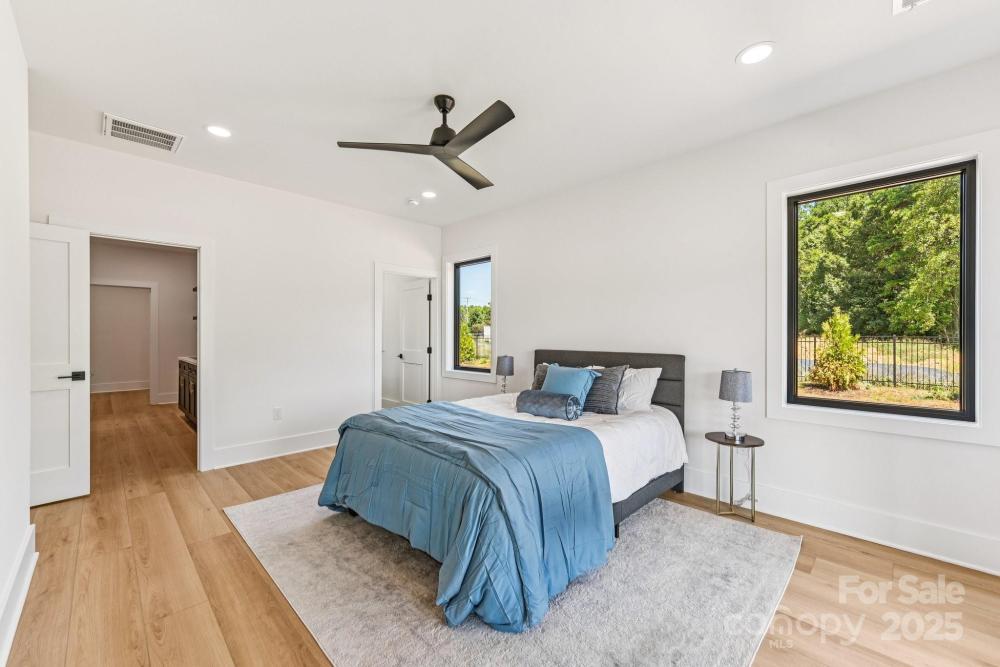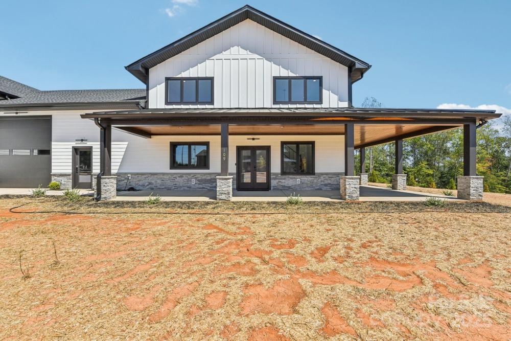 Welcome to Honeyman Estates, an exclusive gated enclave featuring just five luxury barndominiums—a rare opportunity to own one of the most innovative and desirable styles of homes in today’s market. More than just a residence, this property represents a new way of living: blending modern luxury with true practicality, designed for those whose lifestyle is as expansive as their vision. The garage is a masterpiece of its own, designed for more than just storage. With climate-controlled comfort, soaring 16 to 18-foot ceiling heights, epoxy-coated floors, and a powerful 400-amp service panel, this space is fully prepared to house your car collection, provide room for RVs and boats or even your very own indoor pickleball court! Spray foam insulation ensures year-round efficiency, while the impressive volume of the space allows for nearly limitless possibilities. This property offers not only the space but also the freedom to fully embrace your passions. From family living to hobby space, it redefines what home can mean. Step inside to find a stunning great room crowned by soaring vaulted ceilings that draw the eye upward and create an immediate sense of openness and grandeur. Vertical modern cable railing adds a sleek architectural touch, blending contemporary design with the rustic elegance of the barndominium aesthetic. The chef’s kitchen is a true centerpiece, featuring 42” shaker cabinets, quartz countertops, floating shelves, and premium appliances, crafted for both everyday meals and grand entertaining. Luxury vinyl plank flooring flows seamlessly throughout the home, leading to a striking 72” linear fireplace that anchors the living space with warmth and modern sophistication. Outside, the home’s timeless board-and-batten fiber cement siding pairs perfectly with architectural roofing, accented by standing seam metal for the covered porches, to create an aesthetic that is both classic and forward-thinking. Every detail has been considered, from the materials to the craftsmanship, resulting in a property that delivers enduring value and style. This barndominium is not just a home, it is a statement. A practical yet luxurious way of life that merges passion, functionality, and elegance under one roof. Honeyman Estates offers something incredibly rare: exclusivity, sophistication, and space to live life without compromise.