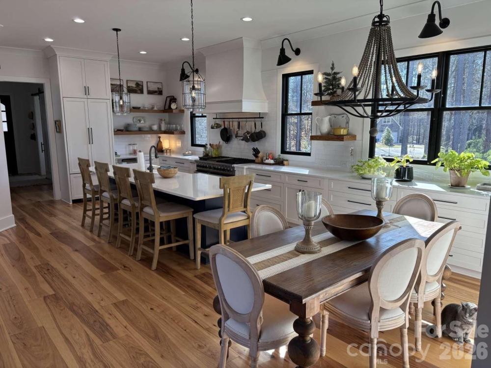 Farmhouse style home built in 2022 at the Lake Norman Airpark blending luxury, comfort, and aviation lifestyle. The open-concept interior centers on a chef’s kitchen with Viking range, 11' island, and 9” hickory floors. The main-level owner’s suite offers his and her bathrooms and separate walk-in closets. While upstairs movie room and office provide flexible living and workspace. Outdoor living includes a 34’x16’ saltwater pool, spa, pavilion grilling area, and 3-car garage with covered drive-through. There is an unfinished apartment with private entrance and a 1,138 sq ft upper level that has been furred out and ready for drywall. This property faces the 3,000’ paved airport runway with direct taxiway access. The 50’x40’ hangar includes a 44’x11’ Higher Power hydraulic door, mezzanine, radiant overhead heat, and attached 36’x24’ epoxy-floored workshop. Airpark amenities include fuel, tie down, hangars, and flight school. Runway repaving set for May 2026.