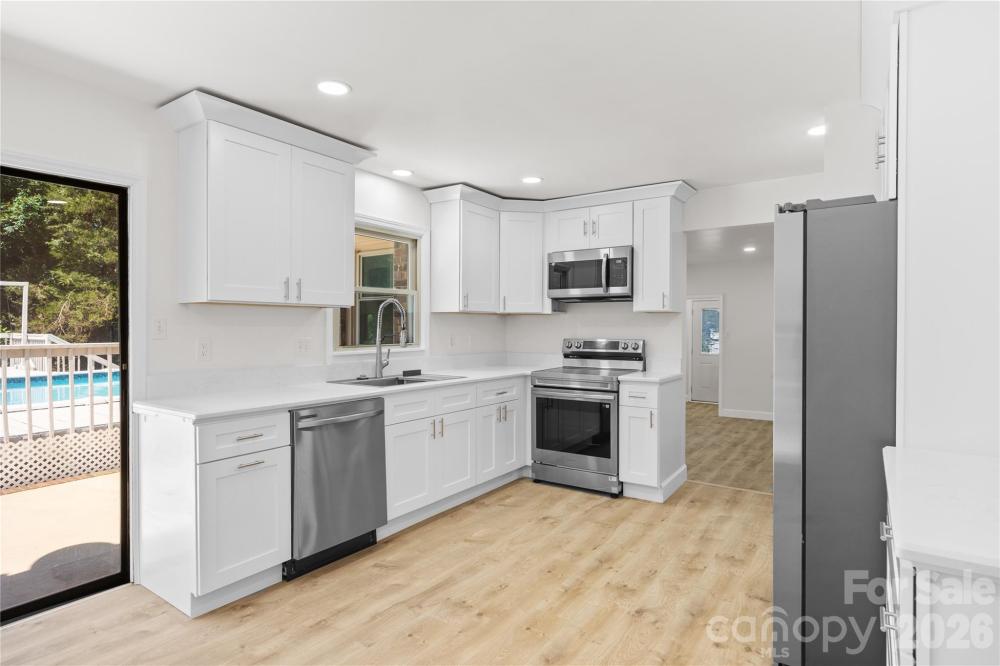 New privacy fence installed! Buyer incentives available — ask for details! Remodeled beauty in Mooresville with NO HOA and Lake Norman access! This spacious 4-bedroom, 2.5-bath home is located in a desirable school district and offers the perfect blend of comfort and lifestyle. Step inside to discover new floors, beautifully updated bathrooms, LED lighting and a fully remodeled kitchen with modern finishes. The home offers both a cozy living room w/fireplace and a separate den, giving you flexible living spaces for work, play, or entertaining. Outside, your own private backyard oasis awaits with a sparkling above ground pool and surrounding deck—perfect for summer fun and relaxation. For just $75/year, enjoy access to Lake Norman with community access to a boat ramp\day dock, pavilion, and game court! Don't miss this rare find—updated, move-in ready, with no HOA, close to shopping, waterfront dining and lake access perks! Excellent opportunity for investment potential and/or personal enjoyment! Great VRBO that performs well!