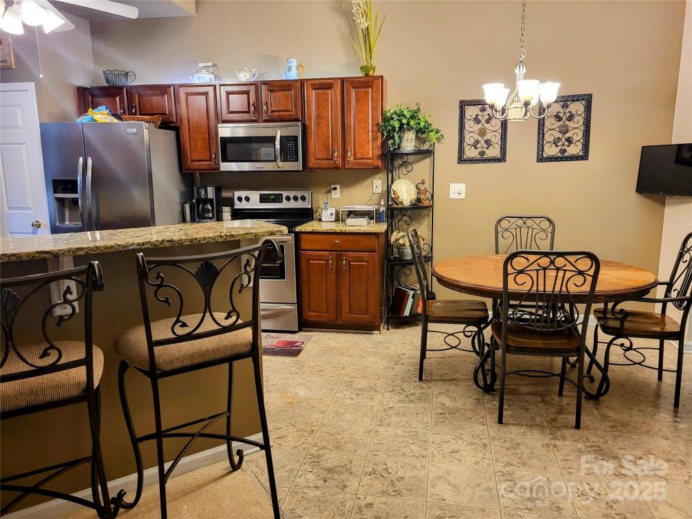 Beautiful partial brick 1.5 story in recommendable Cherry Grove Sub., just minutes from downtown. Large kitchen/breakfast area opens up to sunroom and huge great room. Kitchen has stainless steel, granite, and custom cabinets. Separate dining room. Spacious master bedroom has a full master bath and walk-in closet with custom shelving and drawers. The house has a spilt floor plan with 2 large guest rooms separated by a full bath on the opposite side from the master. The huge spare room upstairs can be a 4th bedroom. New tiered deck with ceiling fan. Private fenced-in back yard with mature trees and an outbuilding for extra storage. Community Clubhouse. Jr. Olympic, pool and tennis courts.