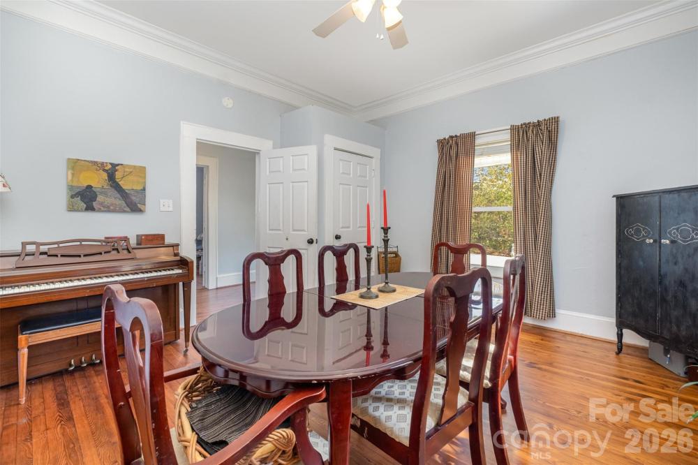 Step into a piece of Mooresville history with this charming 3-bedroom, 2-bath home nestled in the heart of downtown! Built in 1918, this 1,381 sq. ft. home features hardwood floors that add timeless character and warmth. Outside, you’ll find a true gardener’s paradise — thoughtfully landscaped with a wide variety of native and fruit-bearing plants. Along the driveway, enjoy seasonal color from wildflowers, red rhododendrons, lantana, and fruit trees including peach and apple varieties. The front yard showcases an impressive collection of trees and perennials, from American lindens and sourwoods to magnolia, crepe myrtle, and even a fig and pomegranate tree. Out back, a fully fenced 1,056 sq. ft. garden with raised beds is ready for your green thumb, complete with established asparagus, walking onions, and horseradish. The property includes two separate storage buildings, providing flexible space for supplies, a potential studio, or a handy workshop. This rare downtown gem offers a blend of old-world charm and natural beauty — all just steps from Mooresville’s shops, restaurants, and local favorites.