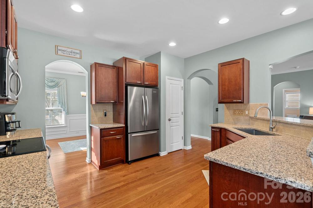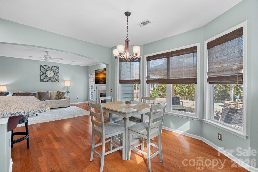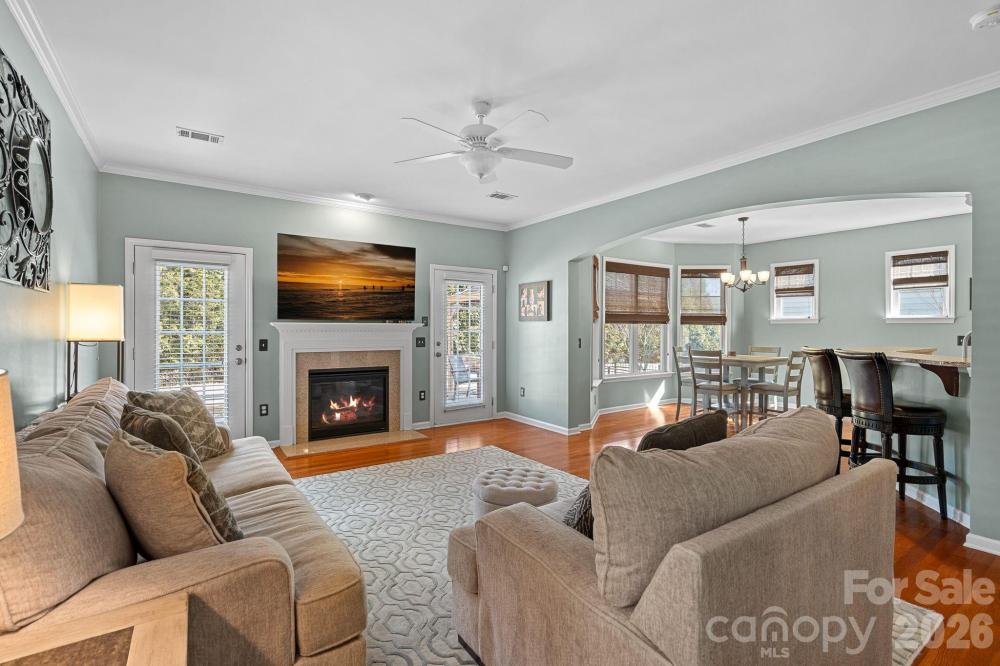 If you have been waiting for the perfect move in ready home in Byers Creek, this is it!! Welcome home to this beautifully maintained two story residence in desirable Byers Creek offering 4 bedrooms and 3 full bathrooms. Completely turnkey and in mint condition, this home has been meticulously cared for and is truly move in ready. A charming front porch welcomes you inside to hardwood floors, arched openings, and a formal dining room with crown molding and wainscoting. The open concept kitchen features granite countertops, tile backsplash, rich wood cabinetry, stainless steel appliances, and a sunny breakfast area overlooking the fenced backyard. The living room with gas fireplace creates a warm and inviting gathering space. Main level guest bedroom or office with full bath adds flexibility. Upstairs, the spacious primary suite offers a vaulted ceiling, dual closets, double vanity, garden tub, and separate walk in shower. A multipurpose/flex room and upper level laundry provide added convenience. Enjoy the oversized patio with custom firepit, an entertainer’s dream and perfect gathering space. Prime Mooresville location close to shopping, dining, marinas, and minutes from everything the area has to offer. Two car garage, community pool, and recreation area. This is a true Byers Creek gem priced to sell and unlike any other. Impeccably maintained and fully move in ready, it offers effortless living from day one.