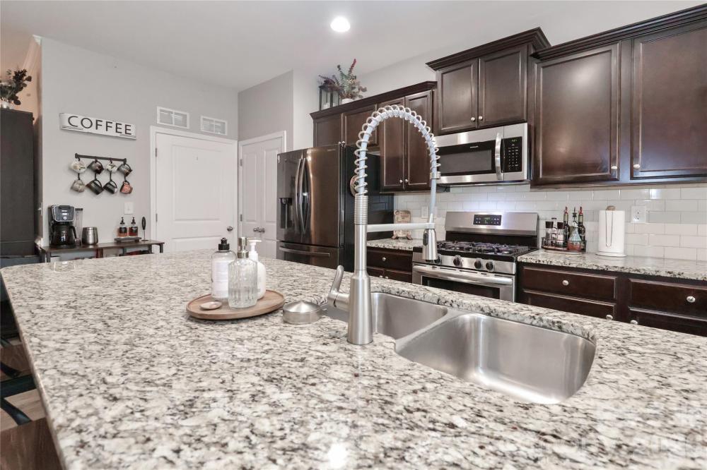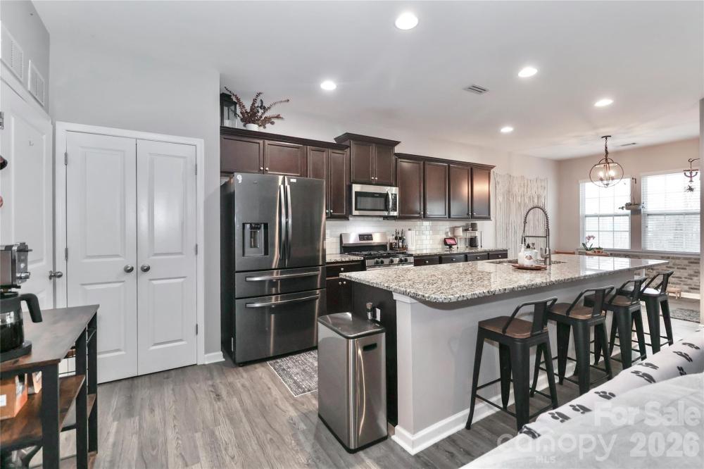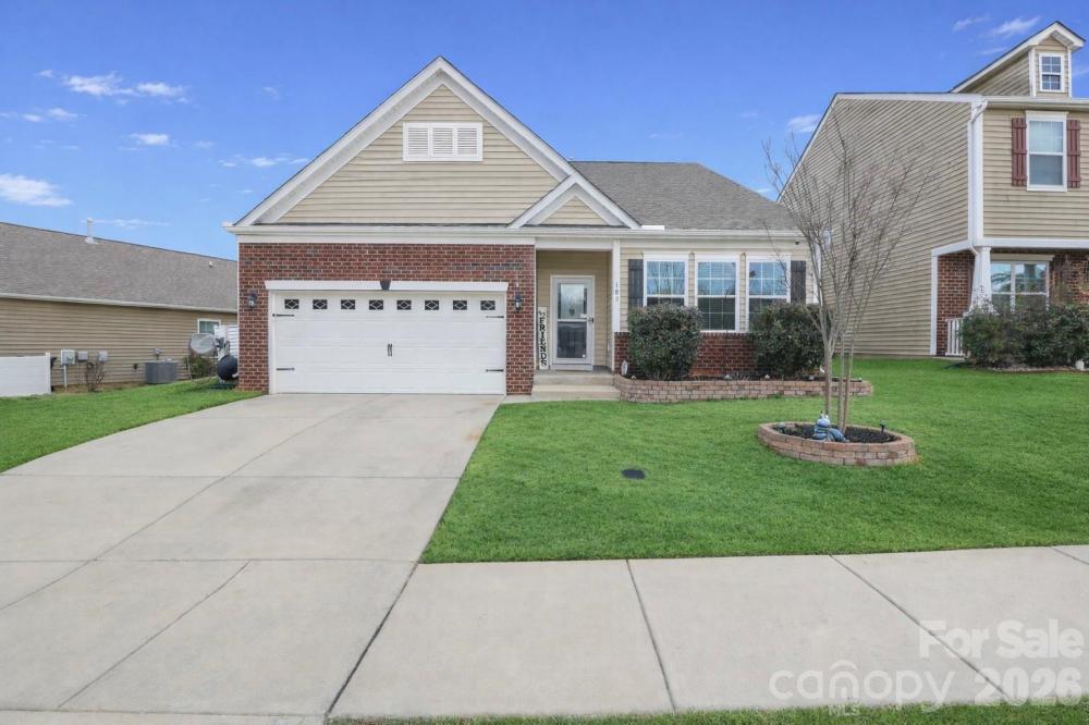 Welcome to 180 N Cromwell Drive in desirable Kensington Village! This beautifully maintained 3-bedroom, 2-bath ranch home, built in 2018, offers 1,930 square feet of thoughtfully designed one-level living. Step inside to an open and inviting floor plan featuring a spacious great room with a cozy gas log fireplace, perfect for relaxing or entertaining. The kitchen flows seamlessly into the dining area and living space and features an upgraded kitchen faucet, new disposal, and soft-close cabinet features for added convenience and style. Updated light fixtures in the laundry and dining areas add a modern touch. The primary suite offers comfort and privacy, highlighted by a custom accent wall and a full bath. Two additional bedrooms provide flexibility for guests, a home office, or hobbies. Additional updates include new toilet internals and retractable hoses for peace of mind. Enjoy the convenience of a main-level laundry room and an attached 2-car garage featuring an epoxy-coated floor, added workbench, extra storage, and enhanced lighting. The concrete driveway and garage-facing front entry provide great curb appeal and functionality. The lot includes a fenced backyard with added garden beds, and a dedicated trash can enclosure, creating both beauty and practicality. Don’t miss your opportunity to own this move-in ready ranch in a prime Mooresville location!