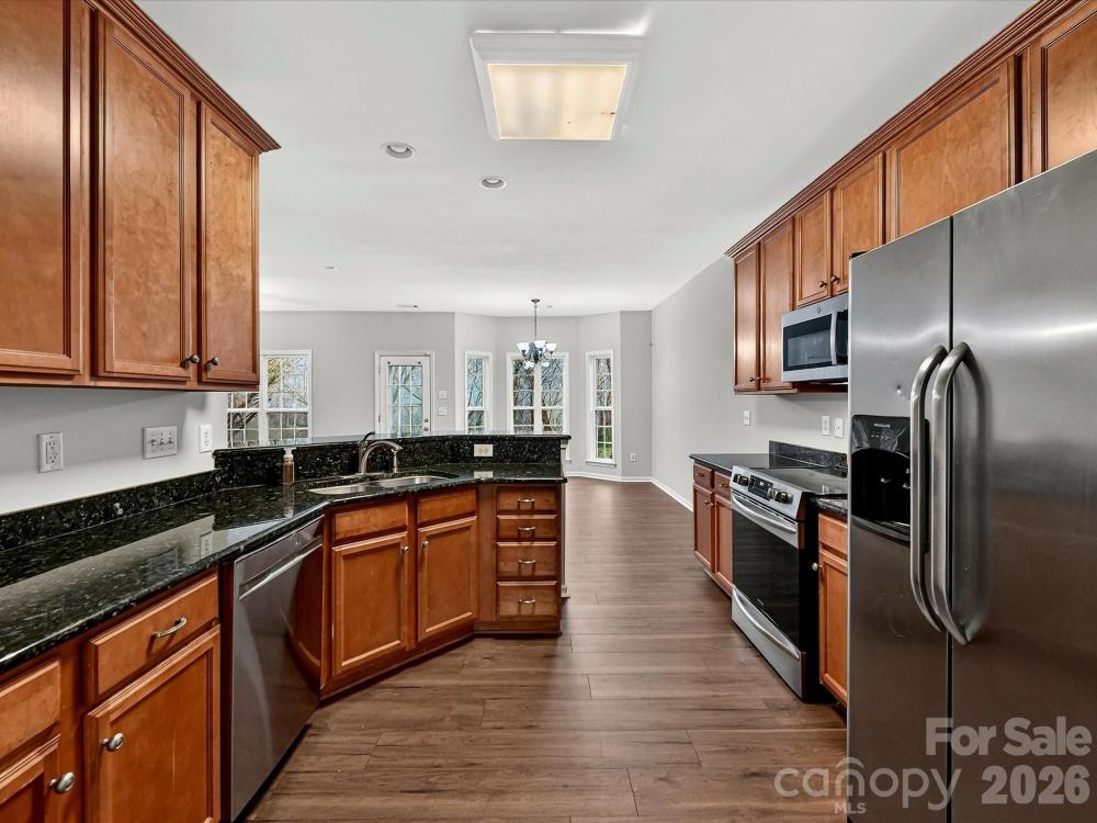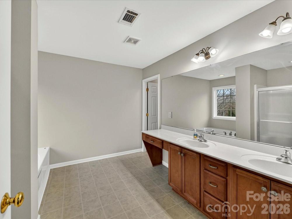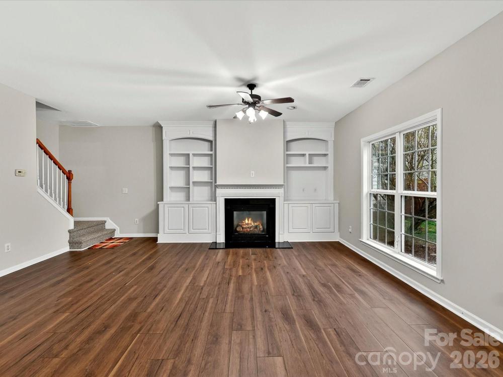 Welcome home to this charming two-story residence featuring classic curb appeal and a spacious two-car garage nestled in a beautifully maintained setting. Step inside to a bright and welcoming foyer with tile flooring and French doors that flow seamlessly into the main living areas. A versatile office/flex space with rich wood flooring and abundant natural light provides the perfect work-from-home setup or cozy sitting room. The spacious kitchen showcases stainless steel appliances, sleek granite countertops, abundant cabinetry, and a functional island ideal for meal prep and entertaining. Just off the kitchen, the bright breakfast nook with charming bay windows creates the perfect spot to enjoy your morning coffee. The inviting great room features custom built-in shelving and a cozy gas fireplace, offering a warm focal point for gatherings. A conveniently located half bath and a light-filled laundry room with built-in shelving add everyday functionality. Upstairs, the spacious primary suite impresses with a tray ceiling, ceiling fan, plush carpeting, and a private en suite bath complete with dual vanities, a relaxing garden tub, separate shower, and a generous walk-in closet. Additional bedrooms provide comfortable accommodations with flexible space for family, guests, or hobbies, along with a well-appointed full bath. A large bonus room offers even more versatility as a fourth bedroom, media room, or playroom. Outside, enjoy a private patio overlooking the expansive backyard, fire pit area and a peaceful wooded backdrop. With generous living spaces inside and out, this home is perfectly suited for both relaxing and entertaining.