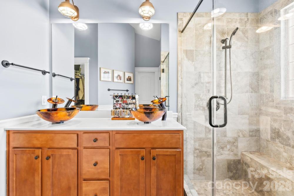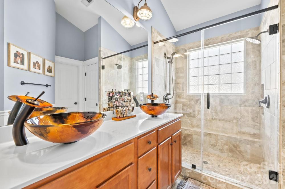 Charming Charleston-style home in the highly desirable Water Oak community! Enjoy exceptional walkability with sidewalks connecting directly to The Village at Byers Creek, offering convenient access to shopping, dining, and everyday essentials. This beautiful 4-bedroom Saussy Burbank home sits on a private corner lot and features a welcoming rocking chair front porch and an oversized rear deck—perfect for relaxing or entertaining. Expansive windows fill the home with natural light and showcase the stunning dark hardwood floors throughout—no carpet anywhere. The upgraded kitchen features extensive molding and wainscoting, granite countertops, a Bertazzoni gas range, 42” custom cream rubbed cabinets with soft-close drawers, and a sunny breakfast area that flows seamlessly into the spacious family room with a cozy gas fireplace. Upstairs, the primary suite offers vaulted ceilings, a renovated bathroom, and a walk-in closet. Three additional bedrooms share an updated full bathroom. Water Oak offers fantastic community amenities including a pool, kiddie pool, clubhouse, playground, sidewalks, and a NEW dog park. Residents also enjoy a community Lake Norman access area with bench seating—perfect for launching a paddleboard or kayak. The neighborhood pond just around the corner on Gresham Lane is a favorite spot for fishing. Conveniently located near highly rated schools, I-77, shopping, dining, and Lake Norman recreation. The garage is workshop-ready, and storage is abundant with attic, crawl space, and garage space. This Charleston-inspired Water Oak gem offers charm, walkability, and community amenities all in one—a home you won’t want to miss!
