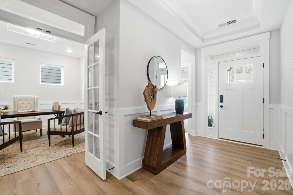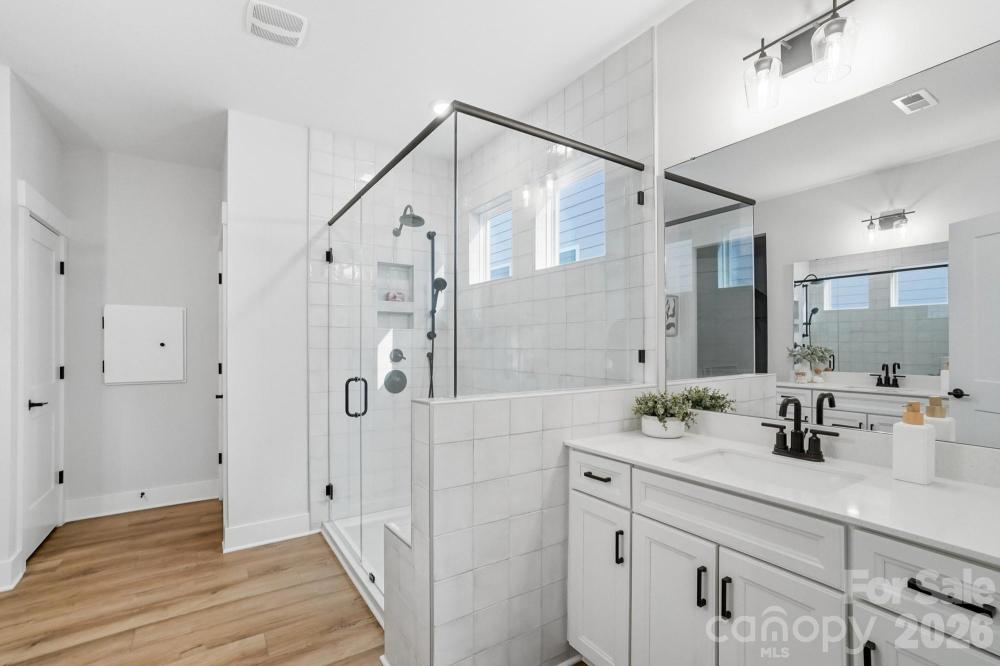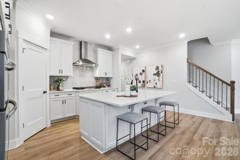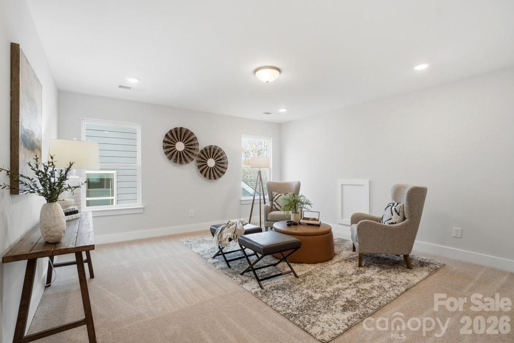 Discover the ease of low-maintenance living in this beautifully designed ranch-style home, featuring an additional half story upstairs complete with a bedroom, full bathroom and a loft. The Mayfair plan features an open kitchen with breakfast area that leads into the family room. The designer kitchen includes white cabinets with matte black hardware, quartz countertops and stainless appliances, including a gas cooktop, designer range hood and wall oven. The primary bedroom has a tray ceiling as well as a luxury shower in the primary bath. One additional bedroom and an office are also featured on the main floor. This home combines the luxury of brand-new construction with thoughtful amenities including lawn care and conveniently located walking trails. Enjoy modern living in a peaceful, well-maintained neighborhood designed for comfort and convenience.