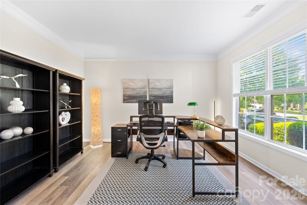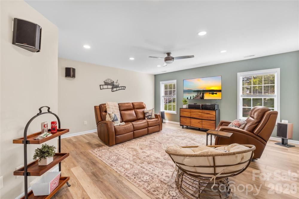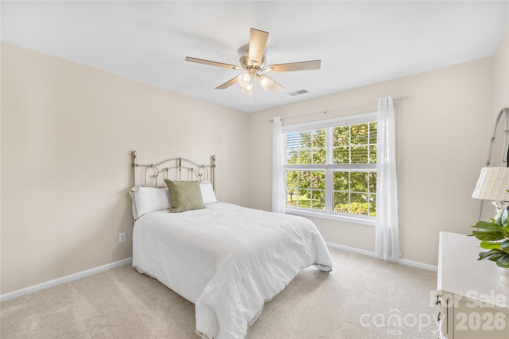 Located in the highly coveted Morrison Plantation, this stunning 5-bedroom, 2.5-bath home offers over 3,400 sq. ft. of stylish, move-in-ready living space. Step into the dramatic two-story foyer and experience the seamless flow of the open-concept design, enhanced by soaring 9-foot ceilings that create a bright, airy feel throughout the main level. The main level features gorgeous updated flooring, a formal dining room, a private office, and a guest bedroom—perfect for visitors or a second office space. The large kitchen shines with an island, abundant counter space, and ample storage with additional cabinets. Upstairs, discover four generously sized bedrooms and a flexible media room ideal for a home theater, playroom, or 6th bedroom. The luxurious primary suite is an oversized retreat with a soaking tub, a walk-in shower, and a spacious walk-in closet. The exterior showcases durable James Hardie® fiber cement siding paired with classic brick, all framed by mature trees and beautifully maintained landscaping. Step outside to your private backyard oasis, perfect for entertaining, relaxing, or playing. Enjoy weekend barbecues on the patio, set up a firepit for cozy evenings, or create your dream garden—this outdoor space is ready for it all. Recent upgrades include entire home updated flooring, a brand-new main-level HVAC, EV charger in the garage, modern light fixtures, and fresh interior paint—making this home completely turn-key. Outside your door, enjoy Morrison Plantation’s unmatched lifestyle with a pool, clubhouse, tennis and pickleball courts, and a full calendar of community events. All this is just minutes from shopping, dining, Lake Norman, and award-winning schools.