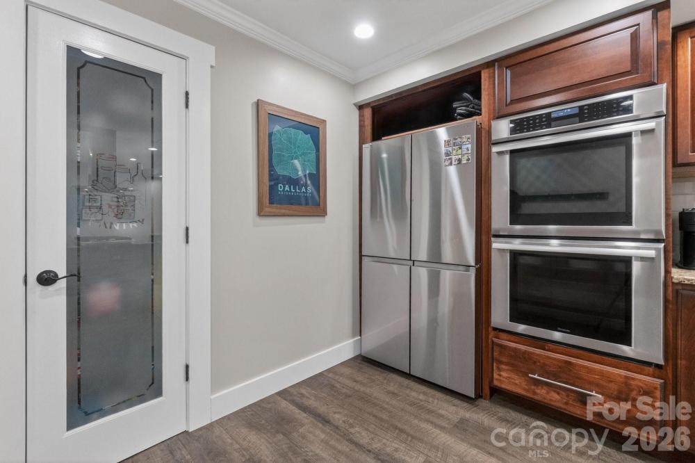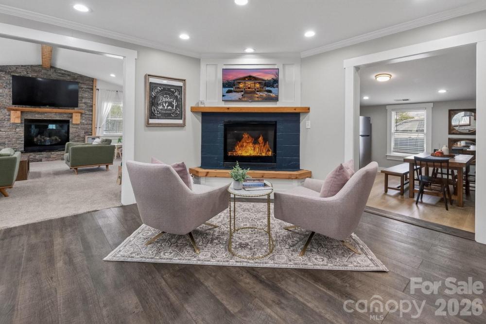 Enjoy the timeless character of a 1930s Craftsman bungalow paired with the comfort and convenience of modern living. Situated on just over an acre and within walking distance of Downtown Mooresville, this home offers a rare combination of prime location and expansive outdoor space. Inside, you’ll find four bedrooms, two full baths, and a half bath, along with numerous built-ins and ample closet space. Cozy up by one of two fireplaces—one in the family room featuring stunning floor-to-ceiling stacked stone, and another just off the kitchen in the breakfast area. Original hardwood floors offer a glimpse into the home’s past, while thoughtful updates provide today’s sought-after amenities. The kitchen, truly the heart of the home, features a gas cooktop with stylish hood, Thermador double ovens, tile backsplash, coordinating granite countertops, stainless steel dishwasher and refrigerator. Even the laundry room shines, complete with generous cabinetry, shiplap accents, and a convenient sink. Outdoor living is just as impressive. Enjoy a large, covered patio with stamped concrete flooring and festoon lighting, a cobblestone patio with built-in firepit, and four outbuildings—including one with electricity currently serving as a fully functional woodshop—all overlooking a peaceful stream at the rear of the property. Recent updates include a brand-new fence, new hot water heater, new dishwasher, new kitchen refrigerator, and eufy permanent outdoor lighting—so you’ll never have to hang holiday lights again.