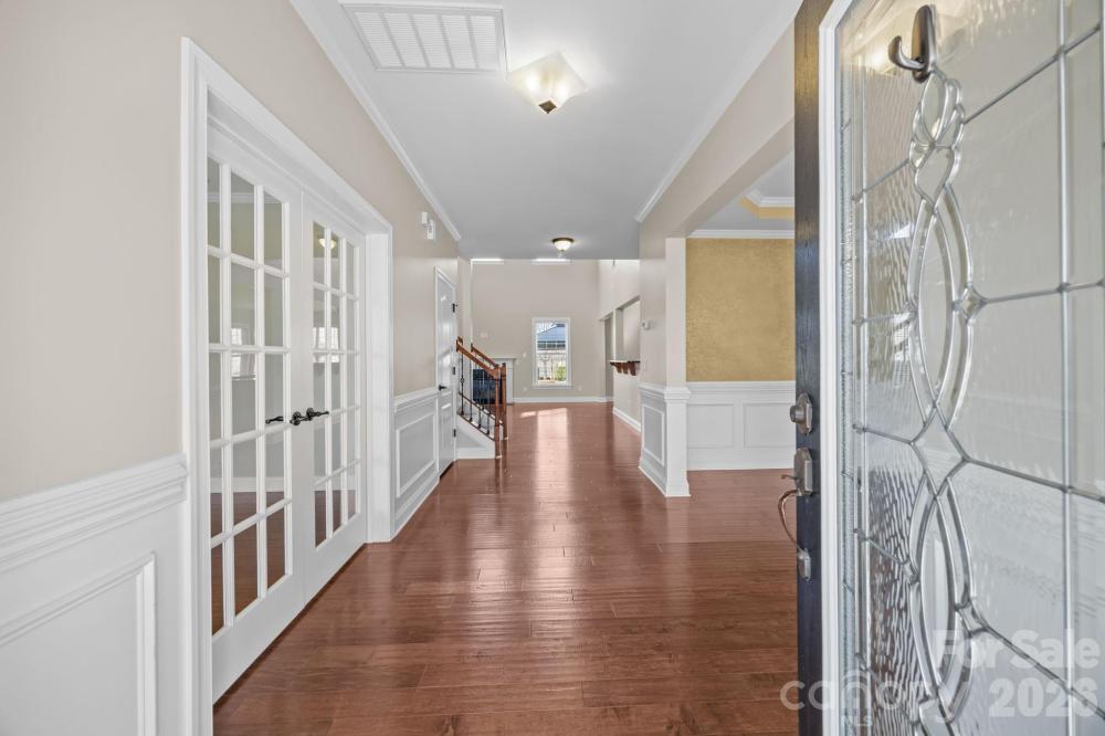 Beautiful full-brick home with stone accents and a 3-car garage in the highly desirable Northbridge subdivision in Mooresville! Enjoy fantastic community amenities, including a pool and clubhouse conveniently located just across the street. Located in the top-rated Mooresville Graded School District. Inside, elegant finishes abound — crown molding, wainscoting, tray ceilings, and ceiling fans throughout, plus a gas log fireplace anchoring the impressive two-story great room. The well-appointed kitchen features a center island, granite countertops, butler’s pantry, 42-inch cabinetry, gas range, tile backsplash, and stainless steel appliances. A main-level office with French doors provides the perfect work-from-home space. Upstairs, the spacious primary suite offers a comfortable sitting area and a luxurious ensuite bath. Generously sized secondary bedrooms provide ample space, along with a flexible bedroom/bonus room featuring its own ensuite bath. Step outside to a flat backyard and patio — ideal for entertaining or everyday relaxation. Don’t miss this opportunity to own a beautifully maintained home in a prime location!