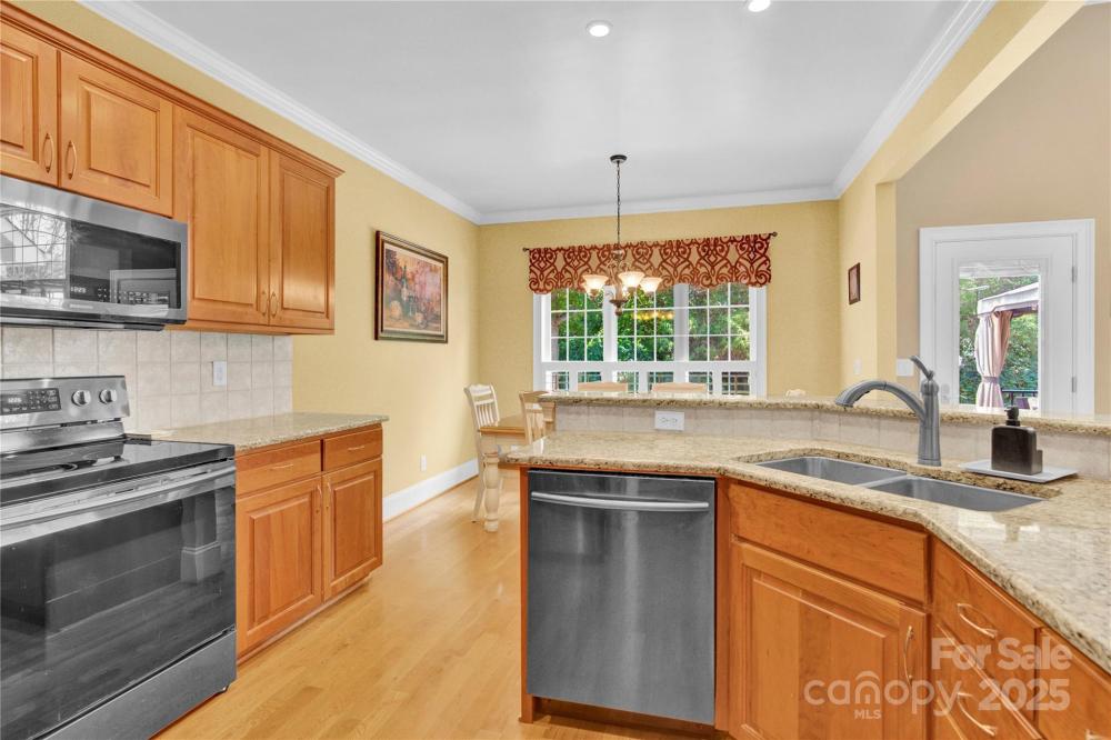 Move-in ready in Mooresville's sought-after Mallard Head community - No HOA! Enjoy peace of mind with a new roof, new HVAC, new water heater, and a newly re-built deck. Welcome to this all-brick home featuring spacious, sunlit rooms and inviting in the non-HOA Mallard Head neighborhood. Built in 2003, this home features oak hardwood floors with crown molding throughout the living and dining areas, offering both warmth and durability. The layout is ideal for those who value comfort and simplicity. The kitchen is thoughtfully designed with solid cherry cabinetry, granite countertops, pull-out shelving, and a built-in pantry. This space is perfect for everyday cooking or casual dining, opening to a breakfast nook and great room with expansive windows framing both the front yard and private backyard. Step outside to enjoy the quiet backyard with a spacious composite deck and patio, perfect for relaxing afternoons or entertaining under the stars. The primary suite offers high ceilings with crown molding and a lighted tray ceiling that create an open and inviting feel. The ensuite bath includes an upgraded glass shower, whirlpool tub, and generously sized walk-in closet. The main level also provides two additional bedrooms with large closets, a second full bath, and a half bath. The first-floor laundry room is equipped with cabinets and a folding surface, with convenient access to the oversized two-car garage with bult-in workbenches and 13' ceiling add excellent storage and utility. Upstairs, two bonus rooms and a full bath deliver endless flexibility, perfect for guests, hobbies, a home office, or a second living space. A large walk-in attic meets all your storage needs. Set on nearly a half an acre with mature landscaping, this home offers privacy and room to personalize, with no HOA restrictions. Conveniently located just minutes from Lake Norman golf, shopping, and dining.