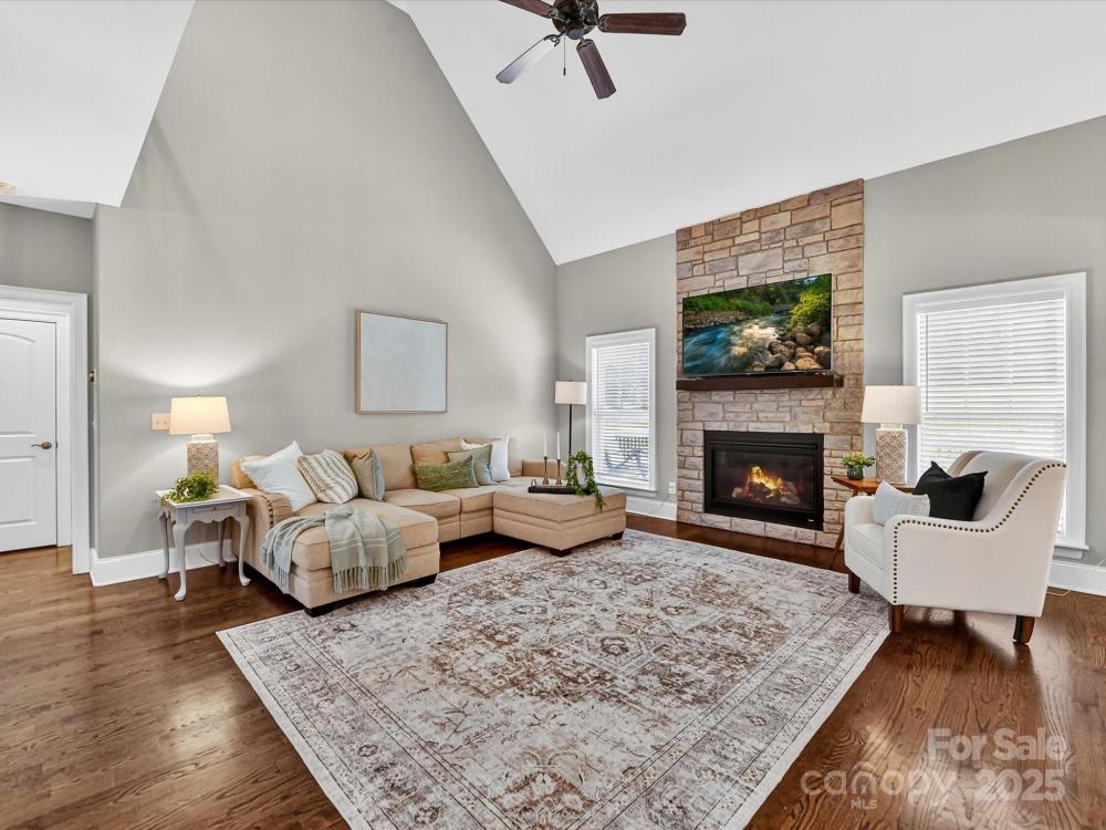 Gorgeous 4-bedroom, 3.5-bath home with a coveted 3-car garage and main-level primary suite, ideally situated on a spacious 0.71-acre lot in a desirable community near shopping, marinas, parks, and boat launch access. The open floor plan showcases hardwood floors throughout the main level and a stunning two-story great room with soaring ceilings and a floor-to-ceiling stone gas fireplace. The chef’s kitchen features granite countertops, stainless steel appliances including a gas cooktop and wall oven, tile backsplash, oversized island with seating and storage, soft-close cabinetry, upgraded lighting, walk-in pantry, and bright breakfast area; refrigerator conveys. The main level also includes a formal dining room with crown molding and wainscoting, along with a convenient drop zone. Upstairs offers three additional bedrooms — including one ensuite and two connected by a Jack-and-Jill bath — plus a spacious bonus room and abundant storage. Outdoor living includes an expansive deck overlooking the private backyard. Additional highlights include in-ground irrigation, encapsulated crawl space, and spray foam insulation in attic areas; pool renderings available upon request.