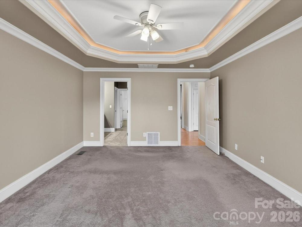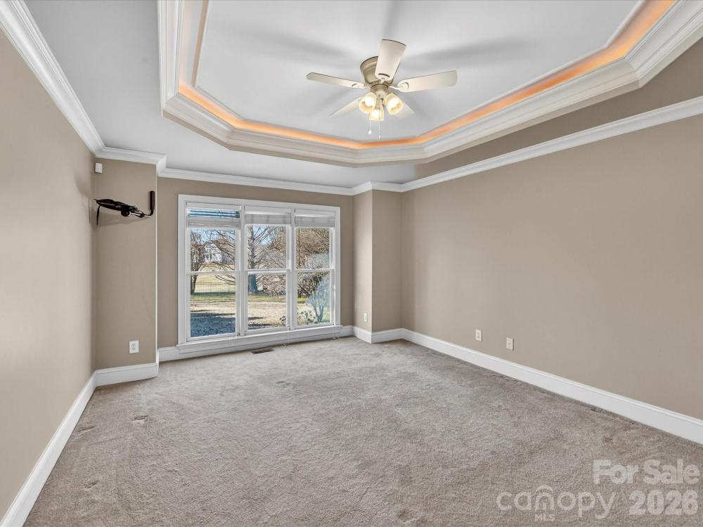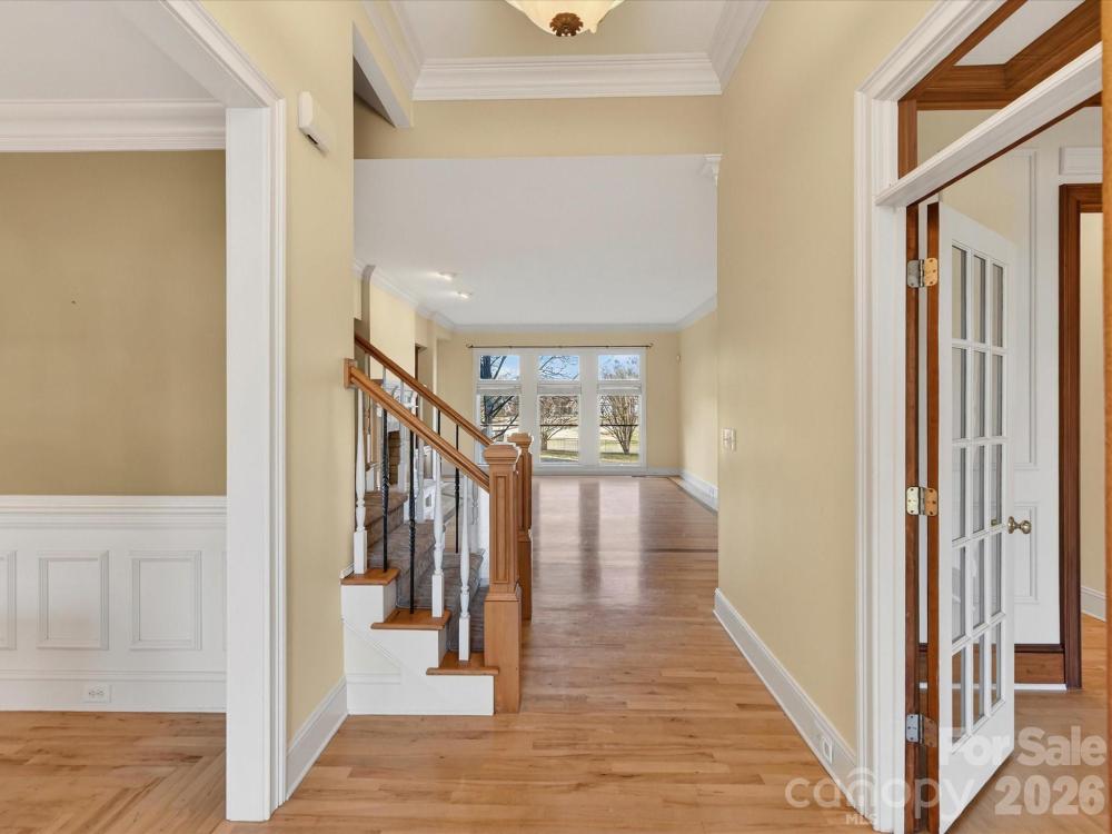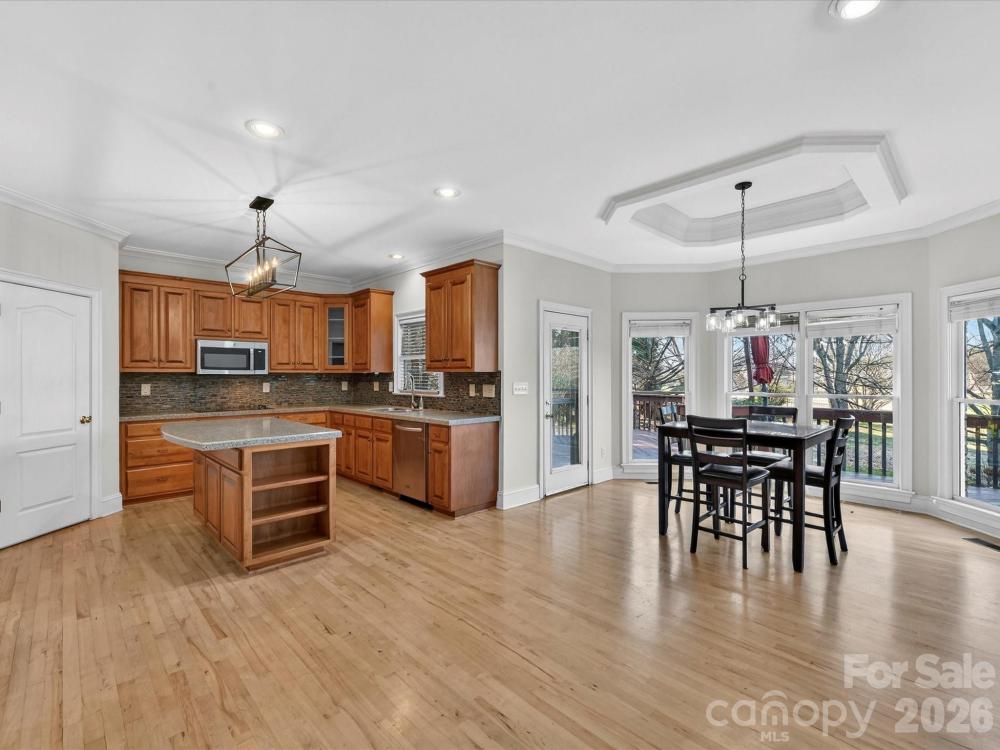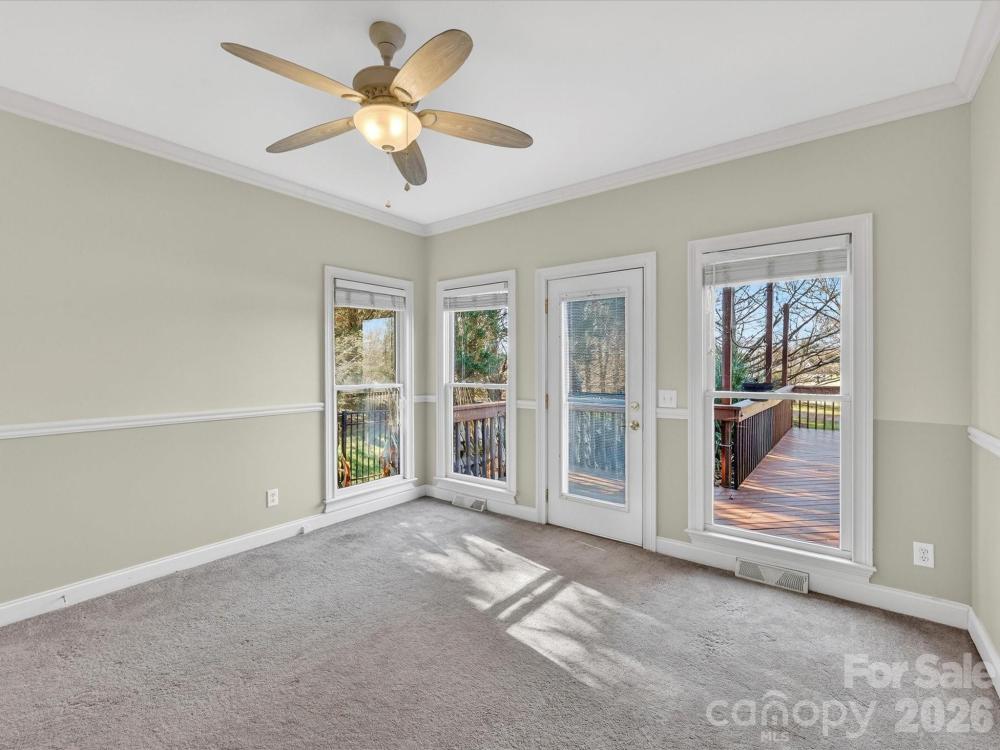 Beautiful, spacious home situated on a large private lot overlooking the 13th hole of Lake Norman Golf Club in a desirable, well-established neighborhood with lake access. This home features stunning hardwood flooring, detailed moldings, and thoughtfully designed living spaces ideal for both everyday living and entertaining. The main-level primary suite offers a tray ceiling, private bath, and walk-in closet, while the upgraded kitchen includes granite countertops, stainless steel appliances, tile backsplash, island, abundant cabinetry, walk-in pantry, and a bright breakfast nook with a double-sided fireplace into the great room. A private office with coffered ceiling and French doors adds functionality and charm. A second living suite on the main level includes a full bath, living area, private deck, and separate entrance — ideal for guests or multi-generational living. Upstairs features three additional bedrooms, a bonus room, full bath, and walk-in attic storage. Outdoor living includes a large deck overlooking the golf course, fenced yard, mature landscaping, and ample space for recreation. Additional highlights include a two-car garage with a dedicated golf cart bay. Lake Norman Golf Club has recently purchased the course and is undergoing a full renovation. $3,000 closing cost credit offered with preferred lender.