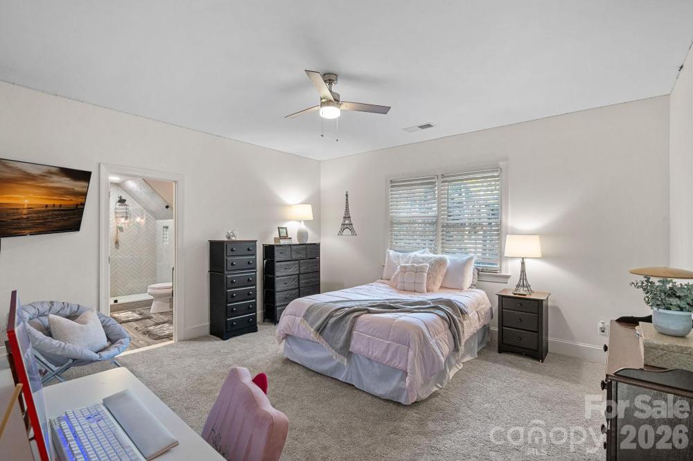 Darling 4 bedroom, 3.5 bath home with deeded boat slip around the corner in this highly desired neighborhood. Primary suite and office on main level. Beautiful and thoughtful upgrades include a new custom kitchen, primary bath, laundry, 2 new full baths upstairs. Hardwood floors throughout most of the home. The custom kitchen is a chef's dream with new appliances, ample storage with all the bells and whistles. Enjoy meals at the new island with ample seating. A window filled wall looks out over the deck and fenced private backyard. The kitchen opens to the 2 story great room with gas log fire place. Main level primary suite with a completely renovated bath including a large shower and soaking tub. A convenient first floor office rounds out the main level. The upstairs boasts 3 bedrooms, a flex room with storage, bonus room, 2 large, full baths, one with walk in storage. Bonus room with built ins and beverage frig. Covered rocking chair front porch, fenced backyard with fire pit and raised bed garden. Please see attached list of all the upgrades, too many to list. Neighborhood amenities include pool, clubhouse, tennis, pickleball, playground, boat launch. Award winning schools, near shopping and interstate access.