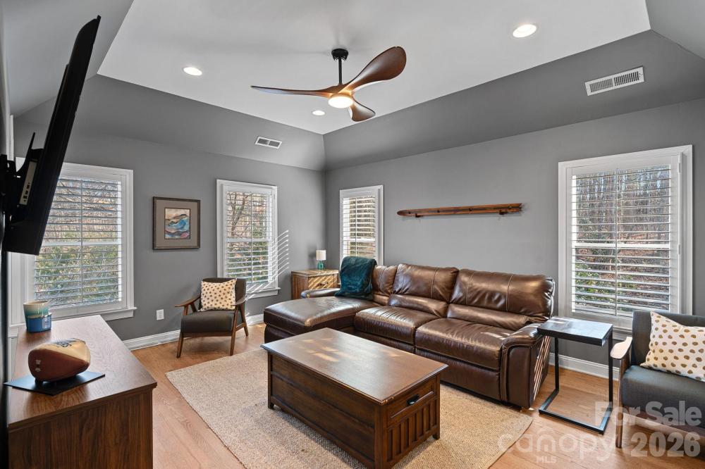 A rare find with access to Lake Norman and tranquil lake views, this all-brick custom home sits on approximately half an acre with a private tree-lined backyard. Located on the highly sought after Langtree Peninsula, this beautifully updated residence offers 4 bedrooms, 2.5 baths, and a spacious bed/bonus room with walk up attic space, ideal for flexible living. Recent enhancements include resurfaced and newly stained hardwood floors, a refreshed fireplace mantel, updated interior paint, and new light fixtures throughout. The main living area has been thoughtfully opened by removing columns and a half wall, creating a bright and inviting floor plan. Enjoy the Lake Norman lifestyle—bring your own boat or rent one and tie up at the neighborhood dock. Have coffee, lunch, or cocktails by the water at the conveniently located sitting area. Conveniently located near Langtree at the Lake, All Seasons Marina with boat club access and a boat launch, and the I-77 corridor, this home offers the perfect blend of privacy, updates, and prime location. Take advantage of lower taxes and top rated schools just over the Iredell/Mecklenburg County line.