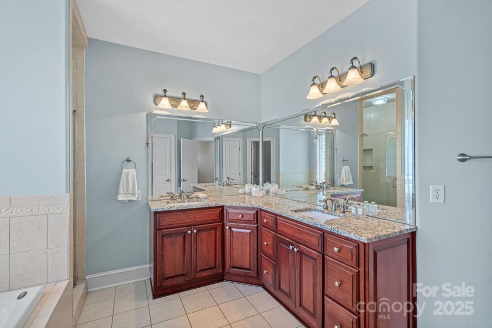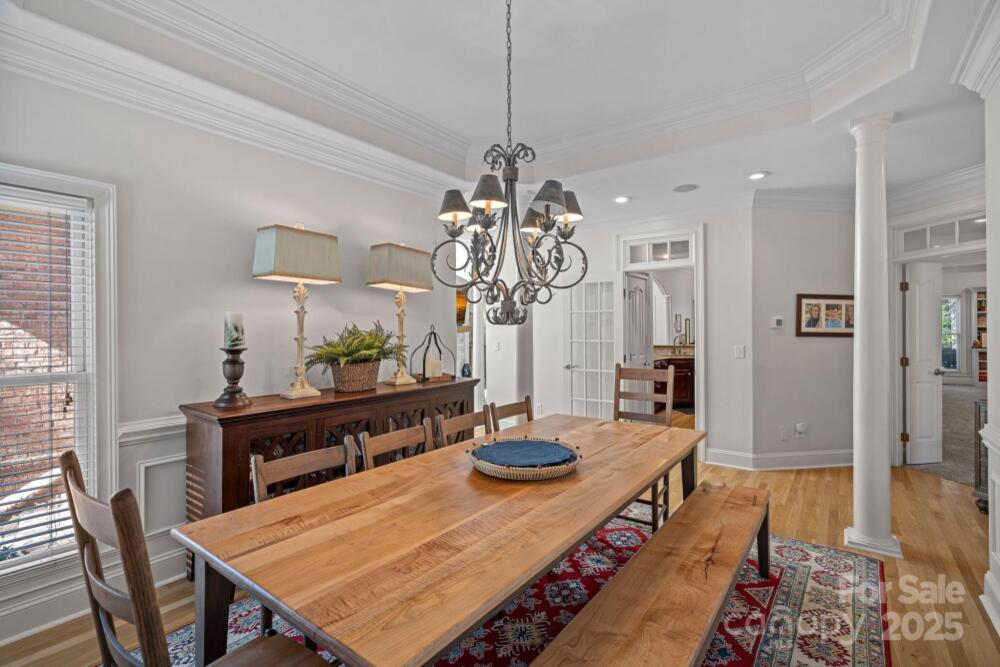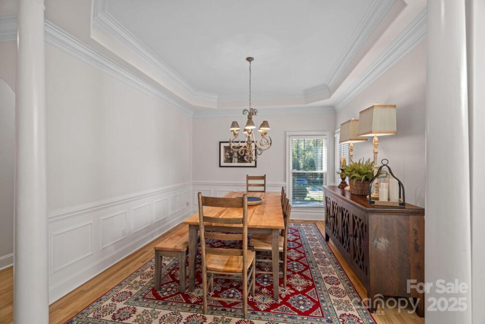 Welcome to this elegant, full-brick estate, nestled in a serene, park-like setting within the desirable Wildwood Cove community. This retreat offers the best of both worlds: peacefully situated between Mooresville and Troutman, yet just minutes from vibrant shopping and dining options. Step inside the bright, open entry foyer, where abundant natural light and soaring ceilings create an immediate sense of grandeur. Discover a ophisticated design characterized by trey ceilings and a practical split-bedroom floor plan on the main level. The expansive primary bedroom is a true sanctuary, featuring a large en-suite bath for ultimate relaxation and peaceful views of the nearly 1-acre backyard. Main-level convenience is key, with a large laundry room, a private office, and two additional bedrooms sharing a full bathroom. The heart of the home is the gourmet kitchen, boasting granite countertops and rich cabinetry. A charming breakfast or sitting area sits just off the kitchen, offering continuous, peaceful views of the lush, park-like backyard. Step outside to the covered back patio, the perfect venue for outdoor entertaining or quiet relaxation amid the meticulously maintained grounds. The upper level expands the living space dramatically. It includes a media room, a full bathroom, and two large bonus rooms, offering endless possibilities as a home gym, hobby space, or secondary living areas. A fantastic bonus for water enthusiasts: a deeded boat slip is just a short walk or drive away, providing easy access to the lake. This home beautifully balances sophistication, comfort, and the alluring lakeside lifestyle.