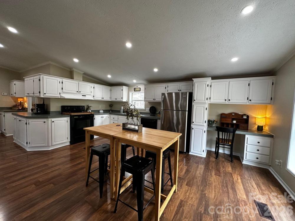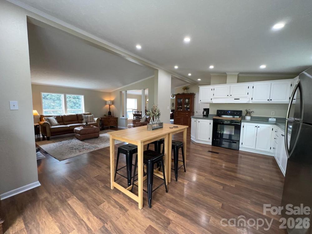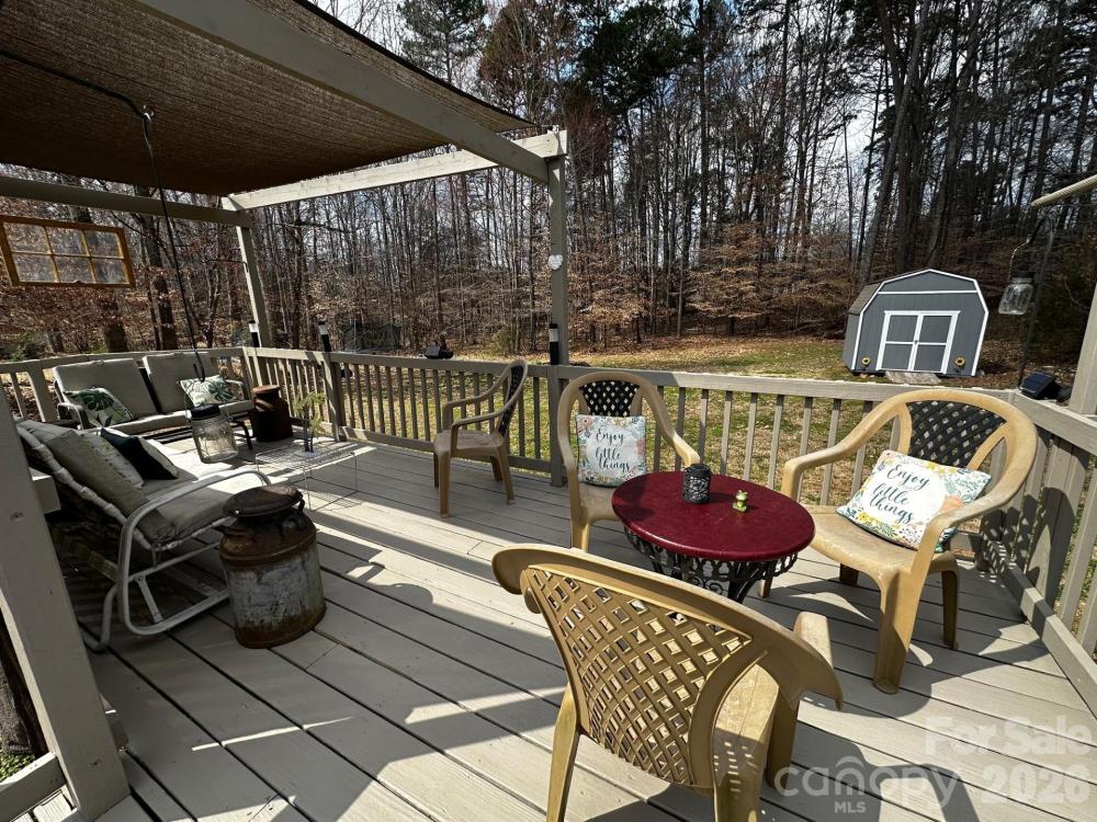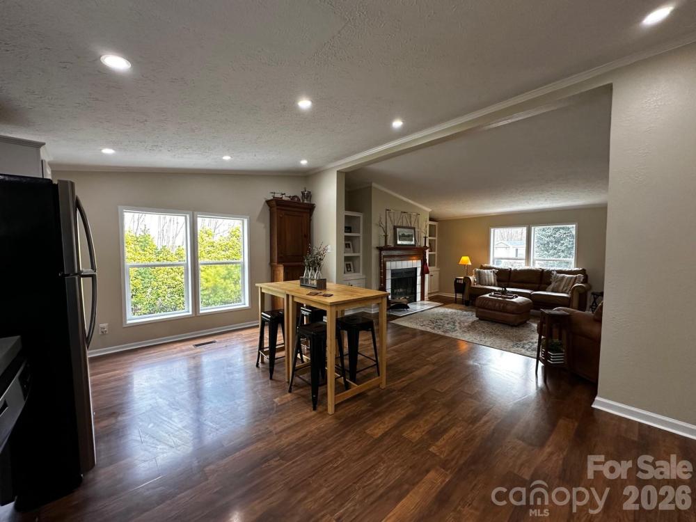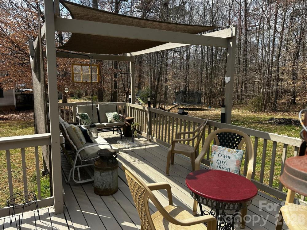 This property is located in the tranquil Windward Pointe community, just minutes from I-77 and conveniently accessible to downtown Mooresville. Positioned on a 0.55-acre, partially wooded, flat lot, the residence features 1,836 square feet of thoughtfully designed living space. The kitchen is equipped with generous cabinet and countertop storage, new LED recessed lighting, updated appliances, and refrigerator is included. The family room offers a wood-burning fireplace with an elegant oak mantle, flanked by custom built-in shelving and cabinetry, opening to a spacious dining area. The mud room is furnished with a stackable front-load washer and dryer, utility sink, and provides direct access to the rear deck. The expansive primary suite includes new carpeting, dual walk-in closets, a walk-in shower, and a large soaking tub. There are two sizable secondary bedrooms. Entertaining is made easy with a newly stained, 274-square-foot L-shaped deck featuring a canopy. The rear yard boasts a freshly painted shed and ample space for gardening. The property is conveniently situated near grocery stores, Lowe’s Hardware, Lake Norman, three parks, hiking trails, Carrigan Farms, and more. Recent upgrades include a new architectural shingle roof (installed February 2026), new 6” gutters and downspouts (installed February 2026) and freshly painted kitchen and kitchen cabinets.