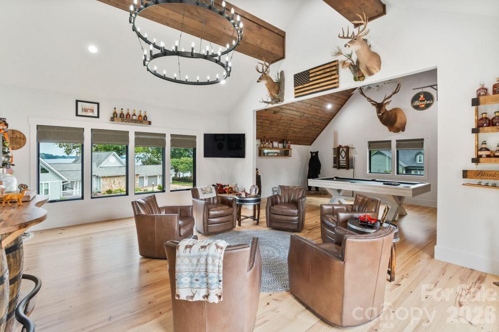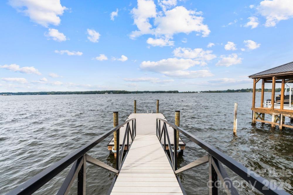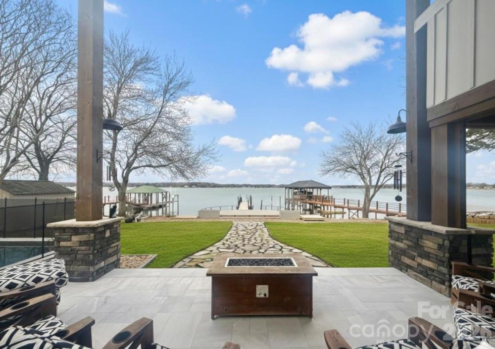 Wake up to wide-open Lake Norman views and end each day with unforgettable sunsets. Perfectly positioned on the main channel in a quiet setting, this custom waterfront home offers the ideal balance of everyday comfort and vacation-style living—whether as a full-time residence or a lake retreat. Inside, an open, light-filled layout is designed to keep the water front and center. Soaring ceilings, expansive windows, exposed beams, brick accents, and custom built-ins create warmth and architectural interest while framing long lake vistas throughout the main living areas. The home lives primarily as a main-level residence, offering effortless flow for daily living and entertaining. The chef’s kitchen anchors the space with leathered granite countertops, glass display cabinetry, a butcher block bar, and built-in appliances, highlighted by a statement LeCornue gas range from Paris. A spacious walk-in pantry adds exceptional function with an ice maker, beverage refrigerator, and open shelving—ideal for hosting lake gatherings. The main-level primary suite is a true waterfront retreat, featuring tranquil lake views, dual walk-in closets with direct access to the laundry room, and a spa-inspired bath with soaking tub, dual vanities, and an oversized glass shower. Entertaining flows seamlessly from the kitchen and living areas to the covered patio overlooking the water. Outdoors, enjoy a resort-style pool, multiple seating areas, and a private dock—perfect for boating, relaxing, and sunset views on the main channel. A standout bonus room offers flexible living as a game room, lounge, or entertaining space, complete with a pool table, bar area, and optional private entrance from the garage. Upper level also features 2 additional bedrooms, 2 full baths, and tons of storage space. Modern farmhouse style meets elevated lake living, with the flexibility to enjoy now or personalize further. The existing dock may be reconfigured to suit your preferred waterfront setup. New walk-way installed at front door and from the patio to the dock. Conveniently located near Denver, Mooresville, Huntersville, and Charlotte Douglas International Airport, this is Lake Norman living defined by views, access, and ease.