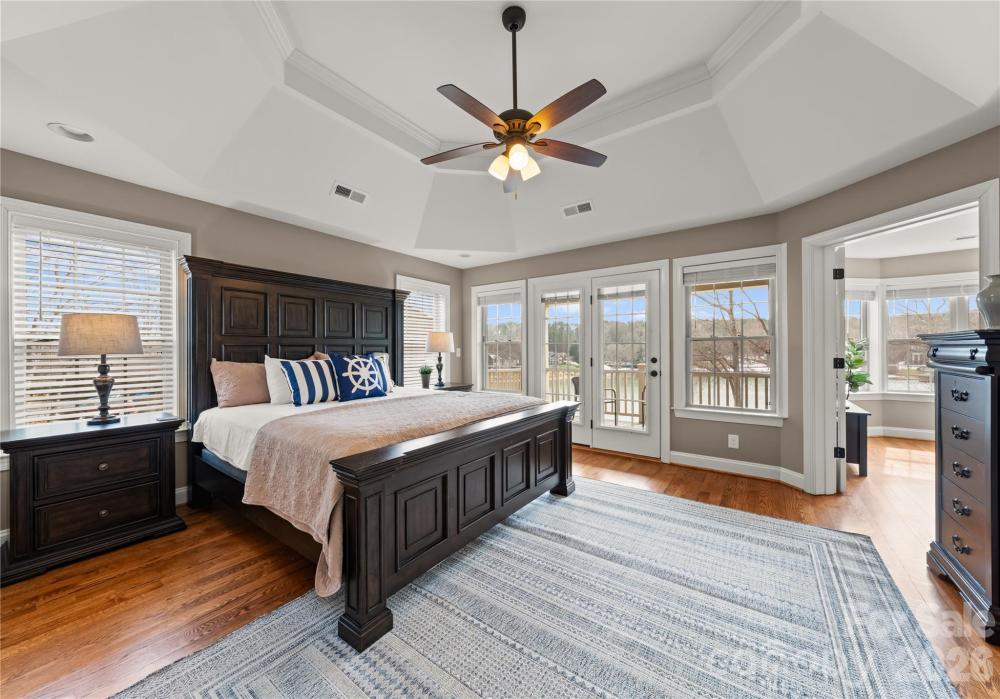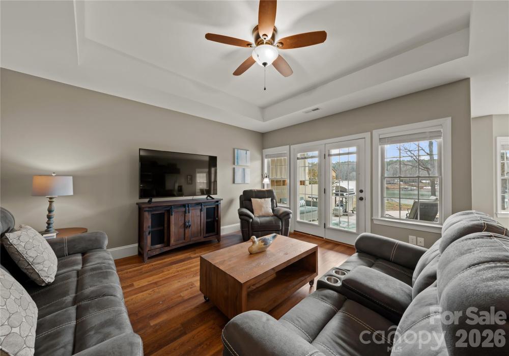 A Southern Living–inspired Lake Norman residence, built in 2020, offers an elevated waterfront lifestyle in a large, serene cove of Sherrills Ford. A private floating dock invites seamless lake recreation, while five balconies and terraces across three levels capture tranquil water views. Designed for everyday luxury and effortless entertaining, the main level features hardwood floors, a vaulted great room, family room, office, laundry and a gourmet kitchen with an island, custom hood vent, high-end cabinetry and gas range. Though permitted for three bedrooms, five flexible rooms are thoughtfully used as sleeping quarters. The upper-level primary suite features its own private balcony overlooking the lake, a sitting room, walk-in closet with washer and dryer, and a spa-like en-suite bath. The finished lower level offers full secondary living with a kitchen, living area, full bath, washer and dryer and a flexible bedroom or office. Enjoy the above-ground hot tub and lake-facing fire pit ideal for those seeking a relaxed, lakefront way of life. Seller owns neighboring property, 4470 Power Dr, that is also for sale.