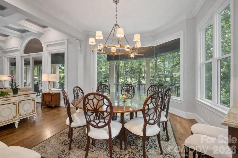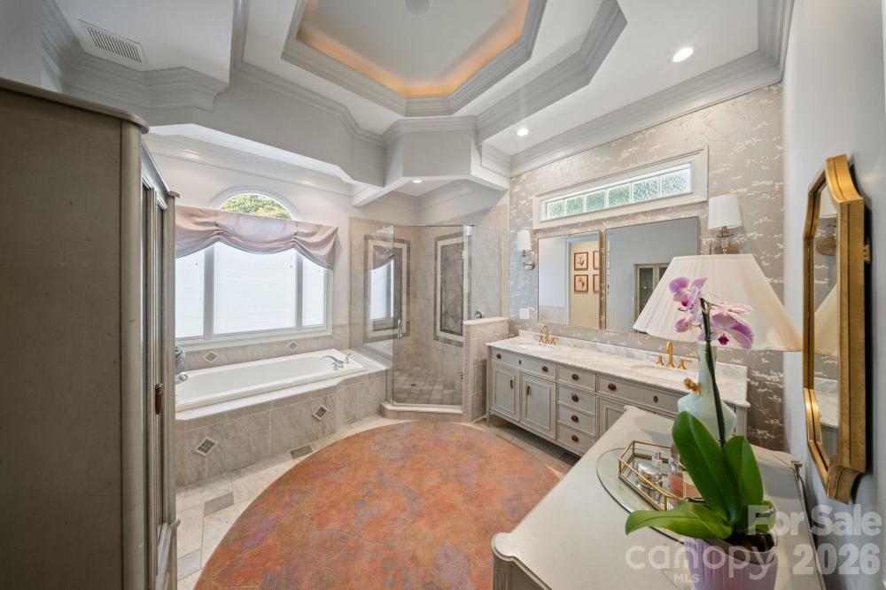 Welcome to an exceptional Lake Norman residence where refined luxury meets effortless lake living. Perfectly positioned within the highly sought-after gated community of Northview Harbour, this remarkable home offers a rare combination of privacy, craftsmanship, and lifestyle—complete with your deeded boat slip just steps away along a semi-private wooded path. Set on a serene cul-de-sac lot of just over an acre, the home is surrounded by mature trees and thoughtfully designed landscaping, creating a peaceful retreat while remaining moments from the water. With more than 8,500 square feet under roof, including over 1,200 square feet of covered verandas, the property was designed for both grand entertaining and relaxed everyday living. At the heart of the home lies a stunning open-concept living space anchored by a truly spectacular kitchen. Completely reimagined with luxury in mind, the kitchen showcases custom cabinetry, premium stone countertops, and a generous center island designed for gathering. Top-of-the-line appliances, designer lighting, and exquisite finishes elevate the space, while oversized aquarium-style windows frame tranquil wooded views and flood the home with natural light. The kitchen flows seamlessly into the expansive dining area and great room, where soaring 10-foot ceilings, intricate millwork, wide-plank hardwood flooring, and a statement fireplace create a sophisticated yet welcoming atmosphere. The main-level owner’s suite serves as a private sanctuary, offering generous proportions and a beautifully appointed spa-inspired bathroom featuring dual vanities, luxury stone finishes, a soaking tub, and an oversized tiled shower. A custom walk-in closet provides abundant storage with a boutique-style feel. Upstairs, three spacious bedrooms, a versatile loft with hardwood flooring, and a bonus room that opens onto the upper veranda provide flexible living spaces ideal for family or guests. Each room has been thoughtfully designed to balance comfort, functionality, and architectural character. The walkout lower level transforms the home into a true multi-generational estate, offering a complete second living quarters ideal for extended family, in-laws, or older children seeking their own private space. This level features a full kitchen, dining area, and living room, along with a game room and expansive recreation space perfect for gatherings or entertaining. A nearly 500-square-foot workshop with both interior and exterior access offers endless possibilities for hobbies, woodworking, or additional storage. Throughout the home, every detail reflects thoughtful craftsmanship and refined design. All bathrooms have been professionally updated with luxury finishes, custom window treatments, elegant lighting selections, and meticulous millwork create a sense of sophistication. The exterior is equally impressive. A striking brick paver circular driveway welcomes guests with timeless elegance, while multiple covered verandas overlook the wooded backyard—perfect for morning coffee, sunset cocktails, or hosting friends and family. Flowering crepe myrtles and mature landscaping enhance the natural beauty of the property while maintaining privacy and tranquility. Residents of Northview Harbour, one of Lake Norman’s premier gated communities, enjoy access to resort-style amenities including a clubhouse, pool, tennis courts, playground, walking trails, and a private boat launch. Just steps away to your deeded boat slip, —one of only eight in this section—provides effortless access to the lake while maintaining an exclusive and peaceful setting. This extraordinary property represents a rare opportunity to experience Lake Norman living at its finest, where elegant design, thoughtful renovations, and an unmatched location combine to create a home that is as impressive as it is inviting. A place where every day feels like a retreat—and where the lifestyle is just as remarkable as the home itself.