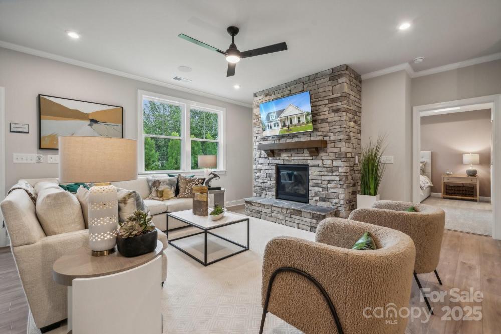 Thoughtfully designed single-story home in a vibrant 55+ community, crafted for ease and contemporary living. This welcoming residence offers three generous bedrooms, including a primary suite with a finely appointed full bath and plentiful closet space. The kitchen, ideal for preparing meals and hosting, features a large island, modern quartz countertops, and top-tier appliances, flowing effortlessly into a spacious, open floorplan perfect for gatherings. A compact pocket office with a built-in desk provides a serene space for work or planning. The living area, enhanced by a modern electric fireplace, creates a cozy ambiance for relaxation or entertaining. Enjoy the inviting front porch, perfect for morning coffee or evening conversations. This home combines stylish design with lasting comfort in a dynamic community setting! Schedule your tour today!