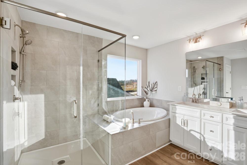 Brand new construction in an amenity-rich community less than two miles from Lake Norman! This Cypress floorplan with additional third floor has it all, including 5 bedrooms, 4 baths, and more than 2,800 square feet of living space! The beautiful designer kitchen features under-cabinet lighting, quartz counters, white cabinets with a contrasting dark blue island, dark blue geometric tile backsplash, stainless range hood, and stainless appliances, including a gas cooktop. This home also features an impressive 8-ft front door, formal dining room with tray ceiling & wainscoting, family room with gas fireplace, luxury primary bath with soaking tub & tiled shower, and a shower with bench seat in 1st-floor guest bath. All bathrooms feature quartz countertops. The third floor has a huge bedroom with a full bath. Other exciting extras include a tray ceiling in the foyer, stairs with composite treads & metal balusters, Enhanced Vinyl Plank flooring and more! Enjoy the outdoors on the front porch, upper balcony, or rear covered porch with patio. Community amenities include a pool, clubhouse, pickleball courts, and pocket parks!