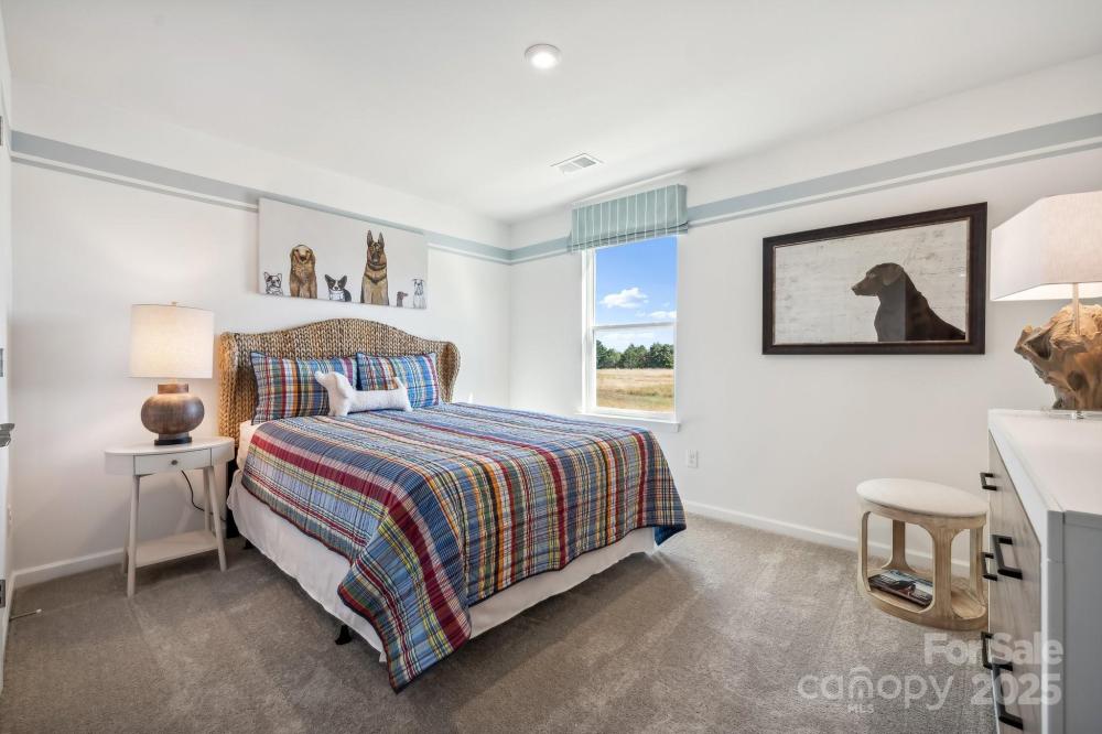 Thoughtfully designed story-and-a-half home in a vibrant 55+ community, crafted for comfort and modern living. The main level offers a spacious primary suite with a well-appointed full bath and generous closet space, plus a second bedroom and full bath for guests. A refined study with elegant double glass French doors provides the perfect space for work or quiet retreat. The kitchen, ideal for cooking and entertaining, features a large island, sleek quartz countertops, and high-quality appliances that flow effortlessly into the open living area. The living room, anchored by a stylish electric fireplace, creates a warm and welcoming ambiance for relaxation or gatherings. Step out to the serene rear screened-in porch—perfect for morning coffee or peaceful evenings. Upstairs, a third bedroom with its own full bath and a versatile flex/loft space offers endless possibilities for hobbies, guests, or extra living area. This home blends contemporary style with timeless comfort in a dynamic community setting! Schedule your tour today!